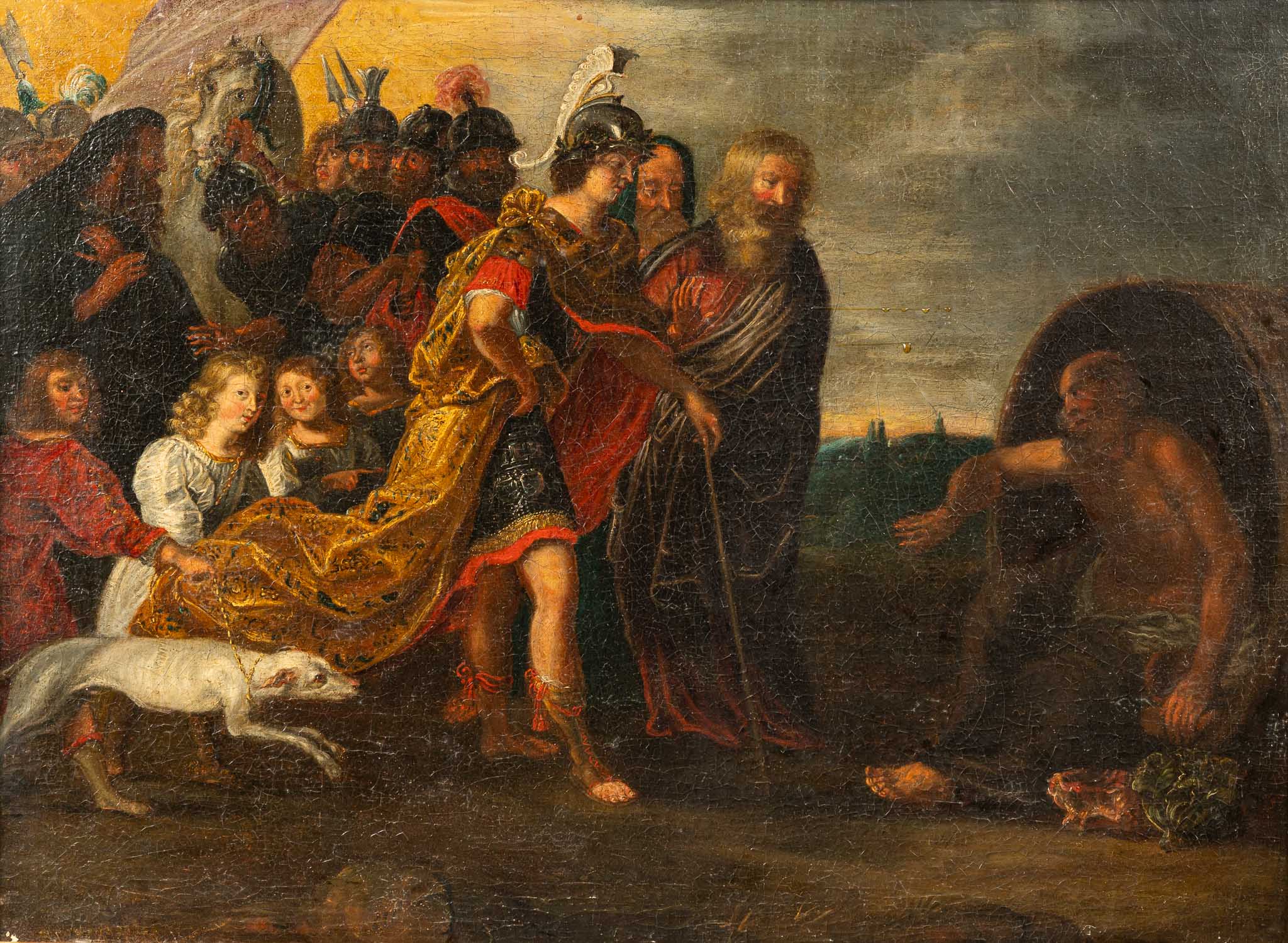 Jan Erasmus Quellinus ( 1634-1715) – attributed, Alexander and Diogenes . Oil on canvas on wood. Framed. 48 x 65 cm