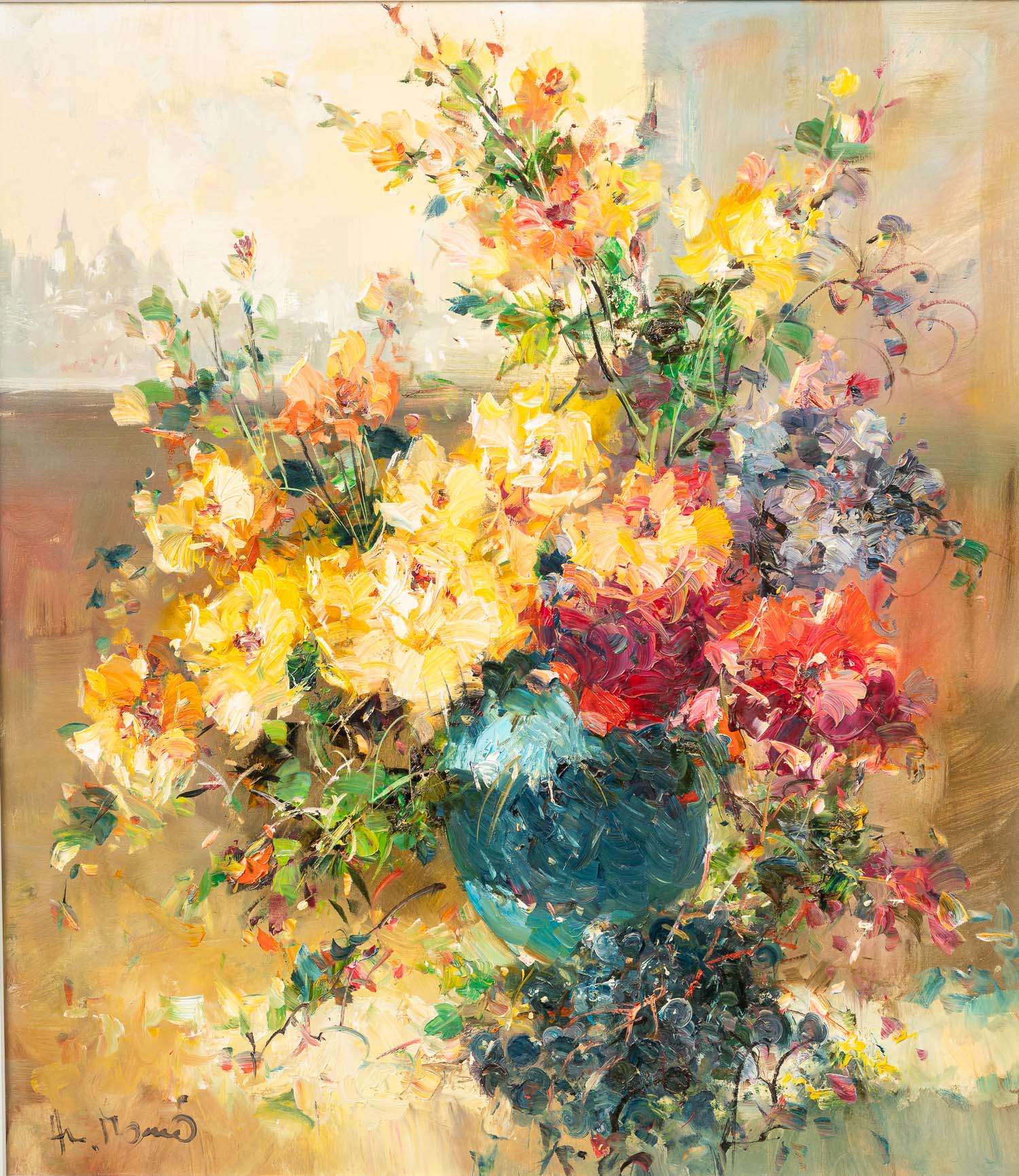 Paul Morro ( 1925-2013)- attributed, Large Still life. Signed bottom left. Framed. Oil on canvas. 80 x 70 cm