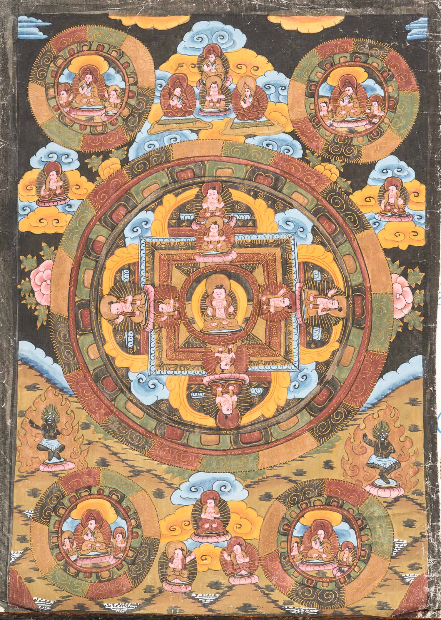 3 Thangkas , Body colours and other techniques on paper,textile, Three items. 40 x 30 cm