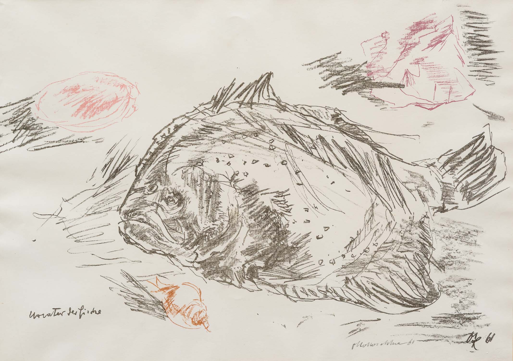 Oskar Kokoschka ( 1886-1980)- Graphic, Urvater der Fische . Lithography on paper. 45 x 60 cm Framed.