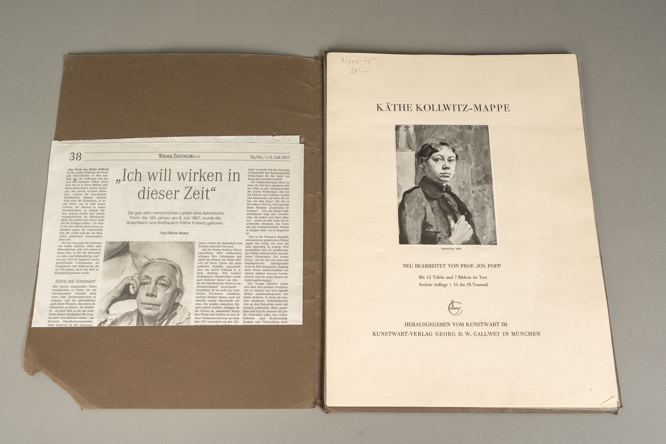Käthe Kollwitz (1867-1945), two books Das plastische Werk. 1967 Christian Wegner Hamburg and Käthe Kolwitz Mappe, Kunstwart Verlag 1925/26. The hammer price will go directly to the social help of the Caritas of Vienna, Provenance; estate found Erzdiozese Wien.