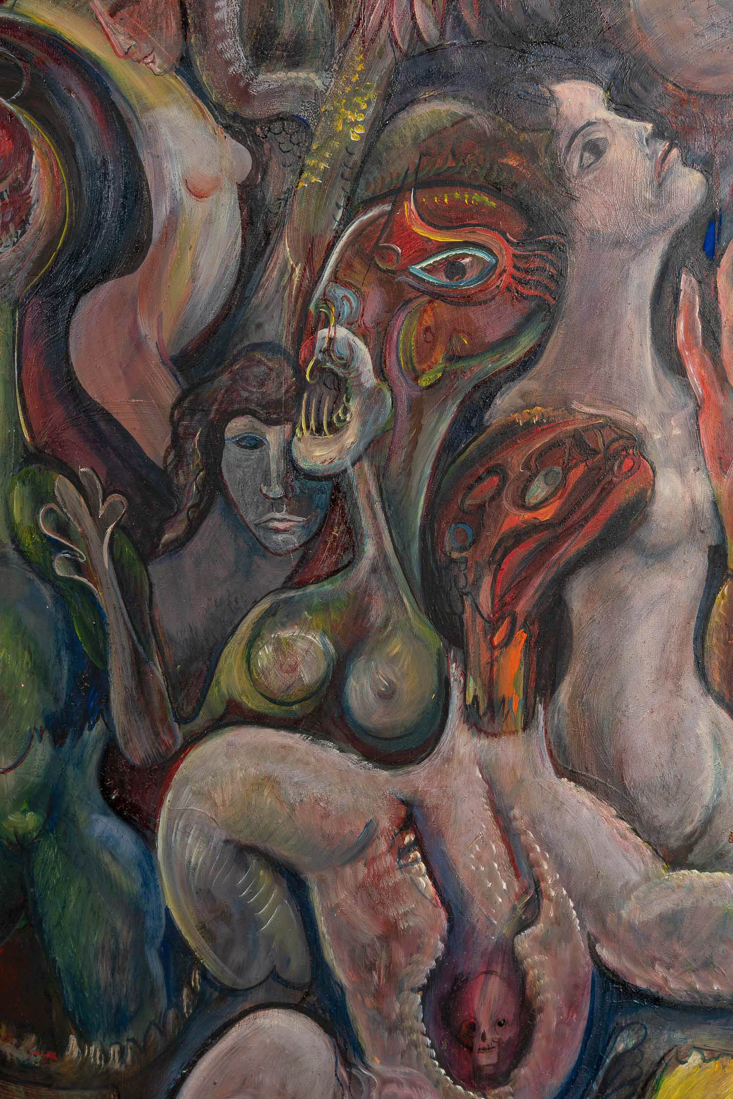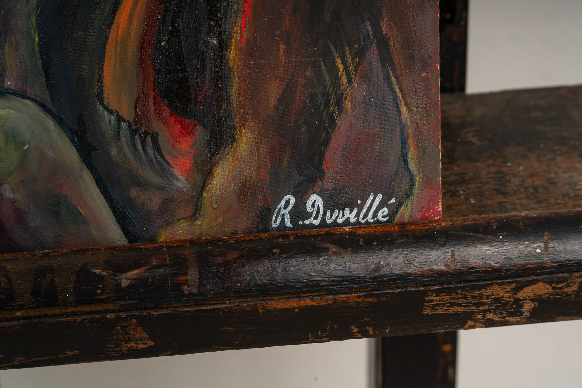 Raymond Duville ( 1916-2007), Phantastic composition, signed bottom right and stamped on the reverse, oil on board . 60 x 50 cm