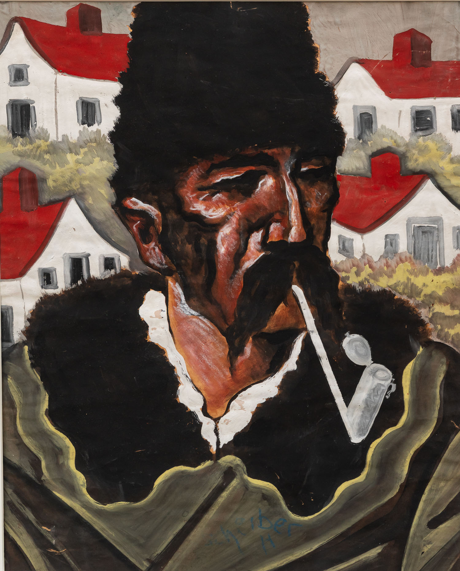 Hugo Scheiber ( 1873-1950), Farmer with pipe . Water and body colour on paper. Signed. Description on the reverse. Framed. 57 x 45 cm