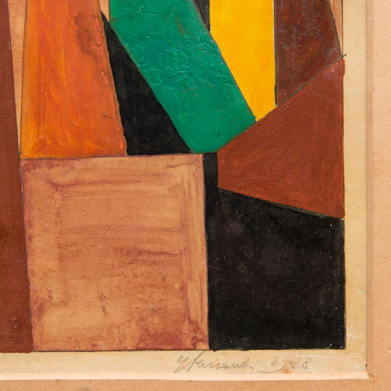 Futurist movement around 1930, Sun and houses , watercolour on paper, signed and dated 1928, framed under glass. 30 x 36 cm.