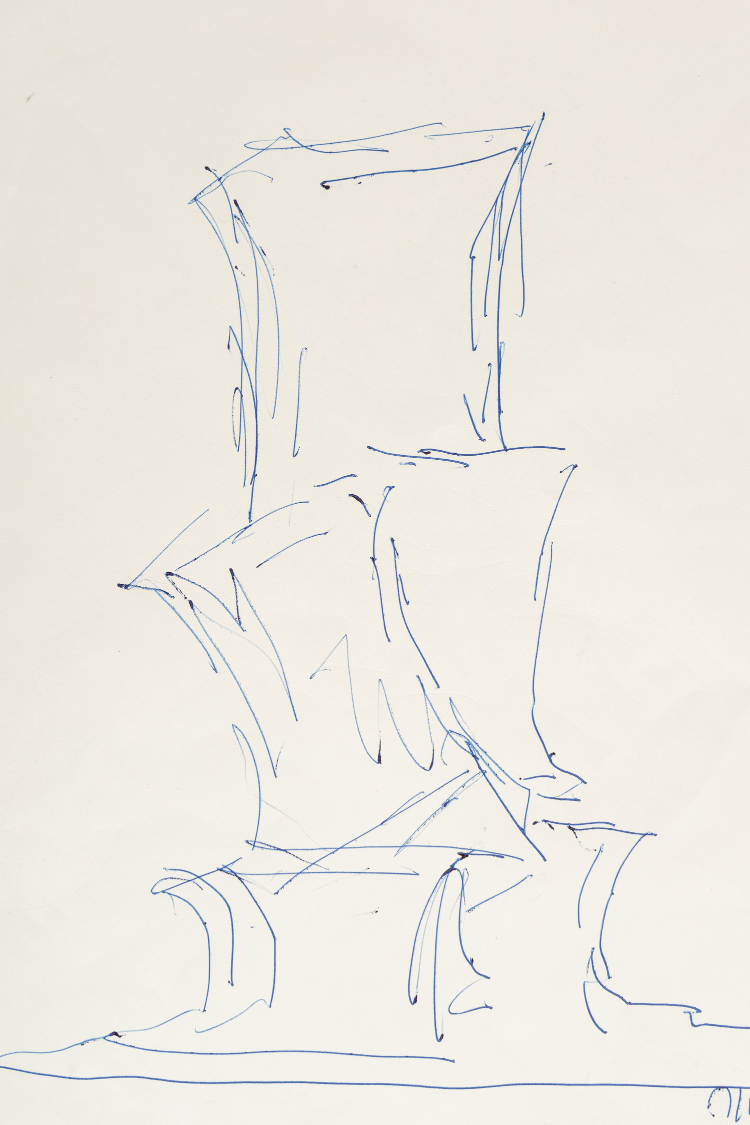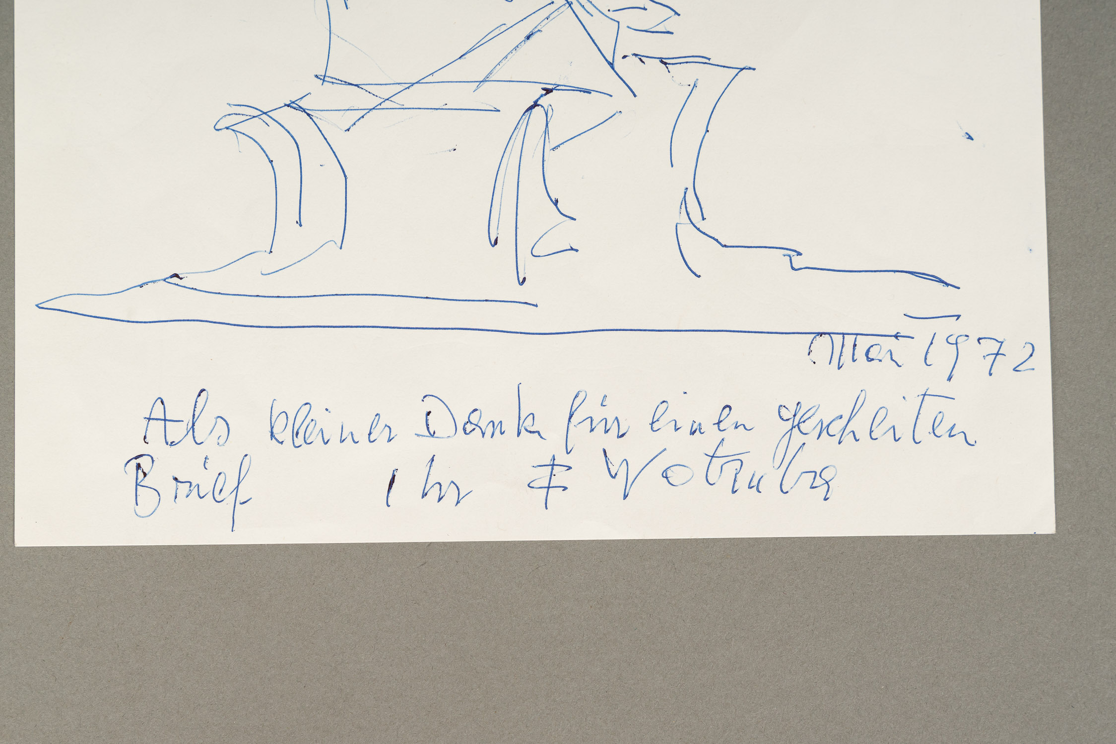 Fritz Wotruba ( 1907-1975), Design for sculpture with dedication , signed and dated 1972 . Dry point on paper. 29 x 21 cm The hammer price will go directly to the social help of the Caritas of Vienna, Provenance; estate found Erzdiozese Wien.