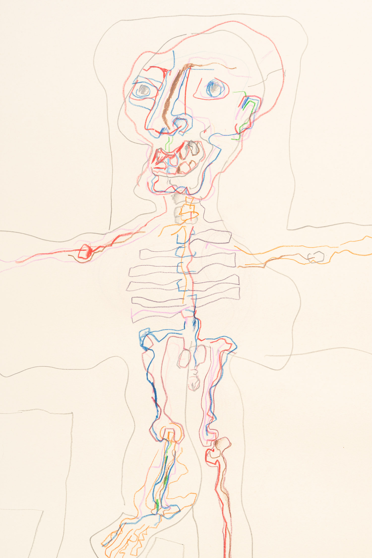 Oswald Oberhuber ( 1931-2020), Male , pencil and colour chalk on paper. Signed bottom right. 61,5 x 45,5 cm . The hammer price will go directly to the social help of the Caritas of Vienna, Provenance; estate found Erzdiozese Wien.