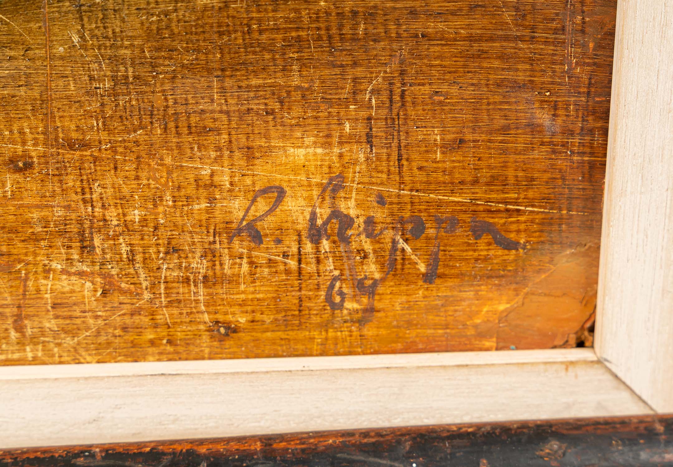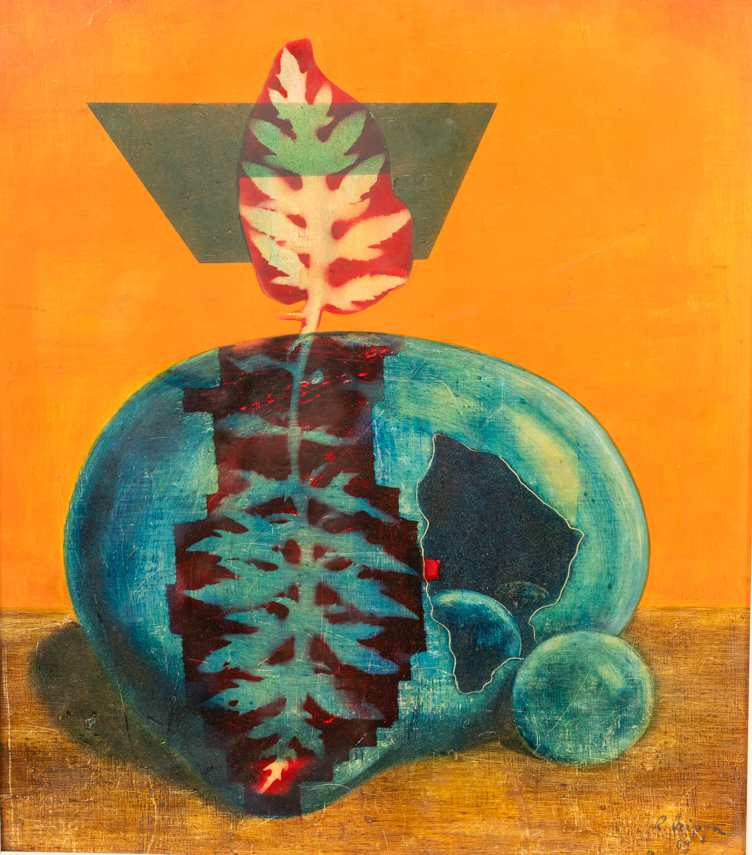 Roberto Crippa (1921-1972)-Attributed, surrealistic composition. Oil on board. Signed bottom right. Dated 1969. Described on the reverse. Framed. 73 x 64 cm.