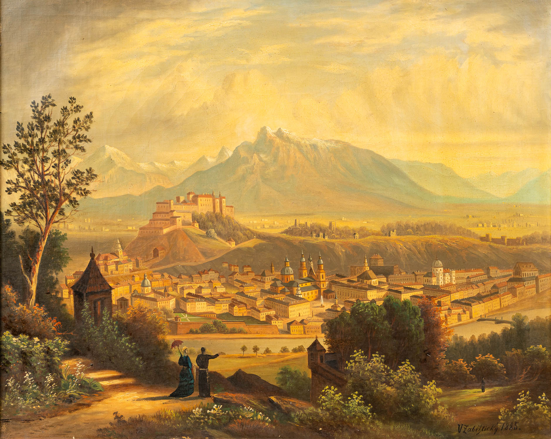 V. Zabehlicky around 1885, View of Salzburg. Oil on canvas. Framed. Signed bottom right. 55 x 70 cm