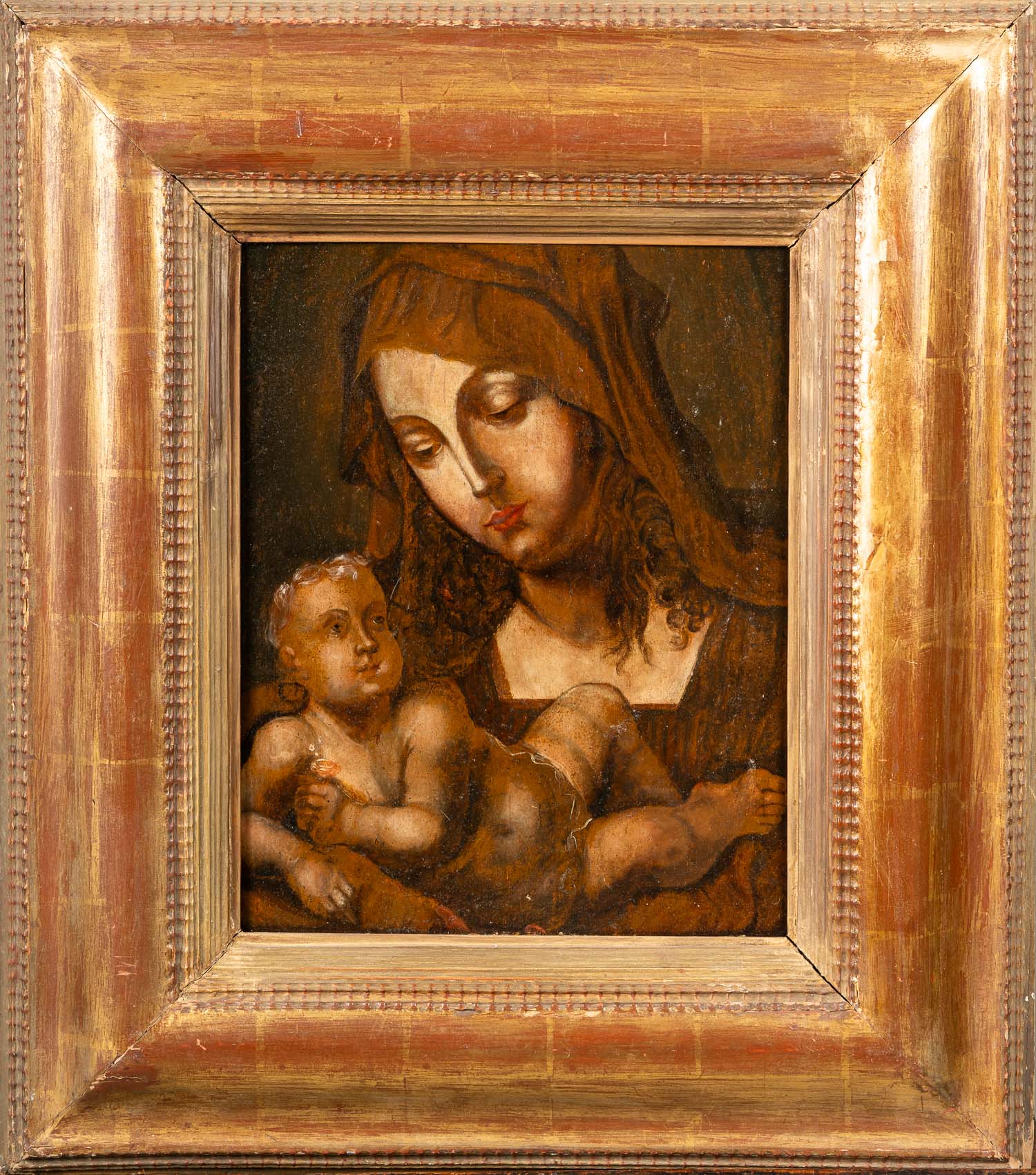 DEUTSCH AUCTIONEERS Lot001 in DetailAlbrecht Dürrer ( 1471-1528 )- follower, Madonna with child . Oil on wooden panel. Framed. 40 x 32 cm