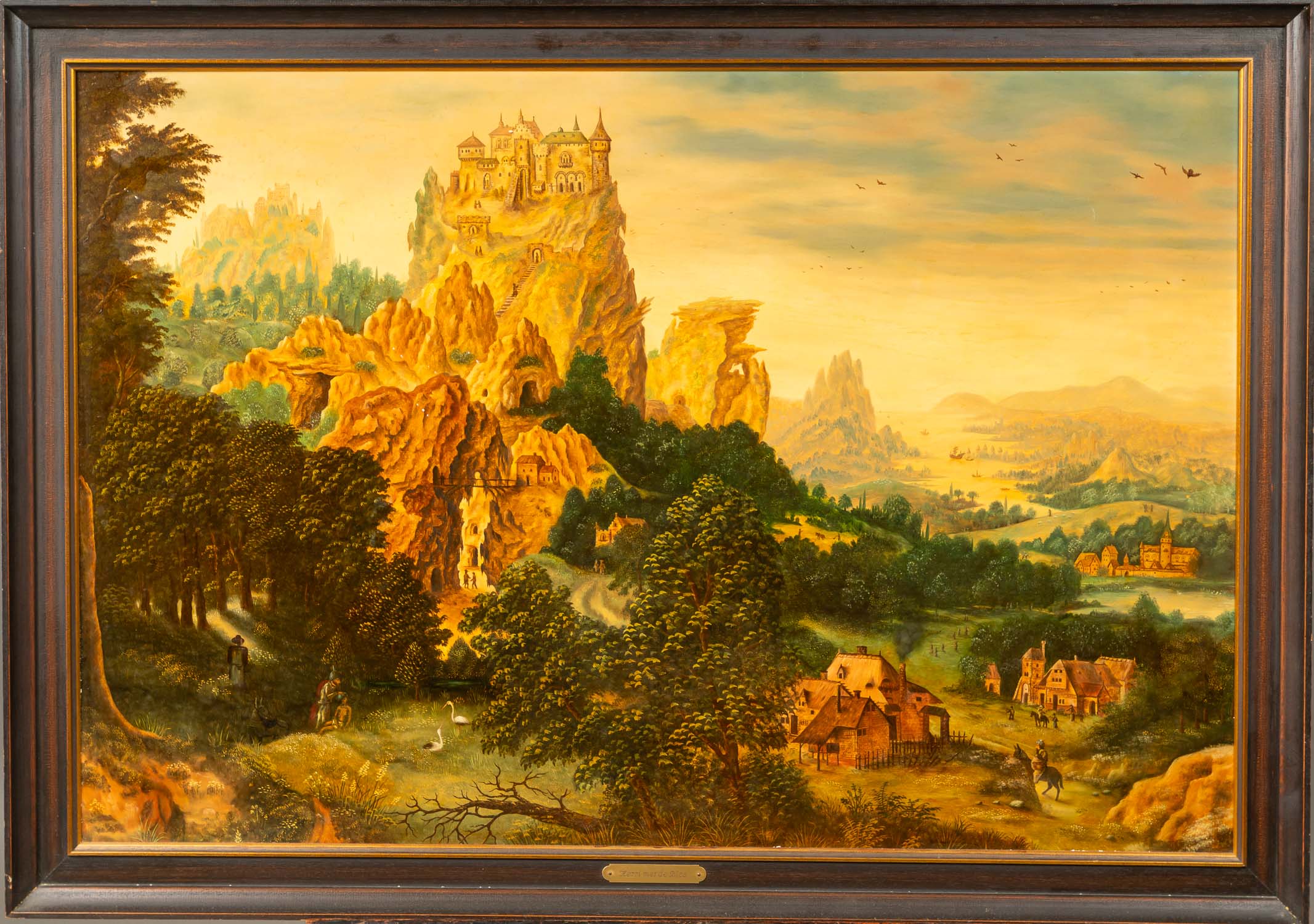 DEUTSCH AUCTIONEERS Lot007 in DetailHenri met de Bles (1510-1550)- follower, Landscape with mountains and travellers. Oil on board. Framed. 67 x 100 cm