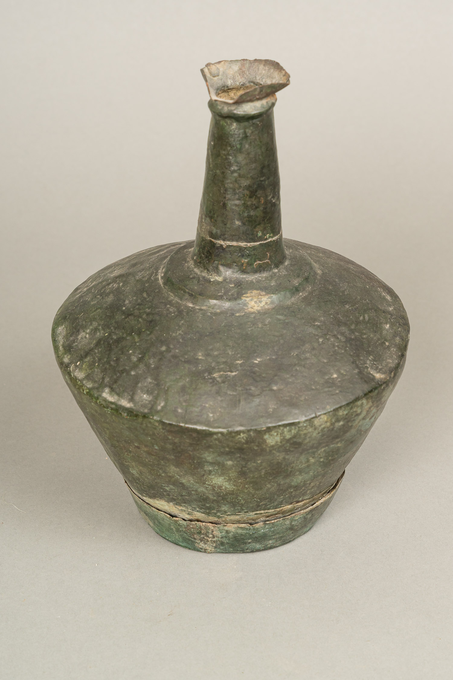 DEUTSCH AUCTIONEERS Lot010 in DetailAncient Copper Flask, with long neck. Canted and rounded body. Lower separate part. Verdi gris. Damages, probably greek , Black Sea region ,