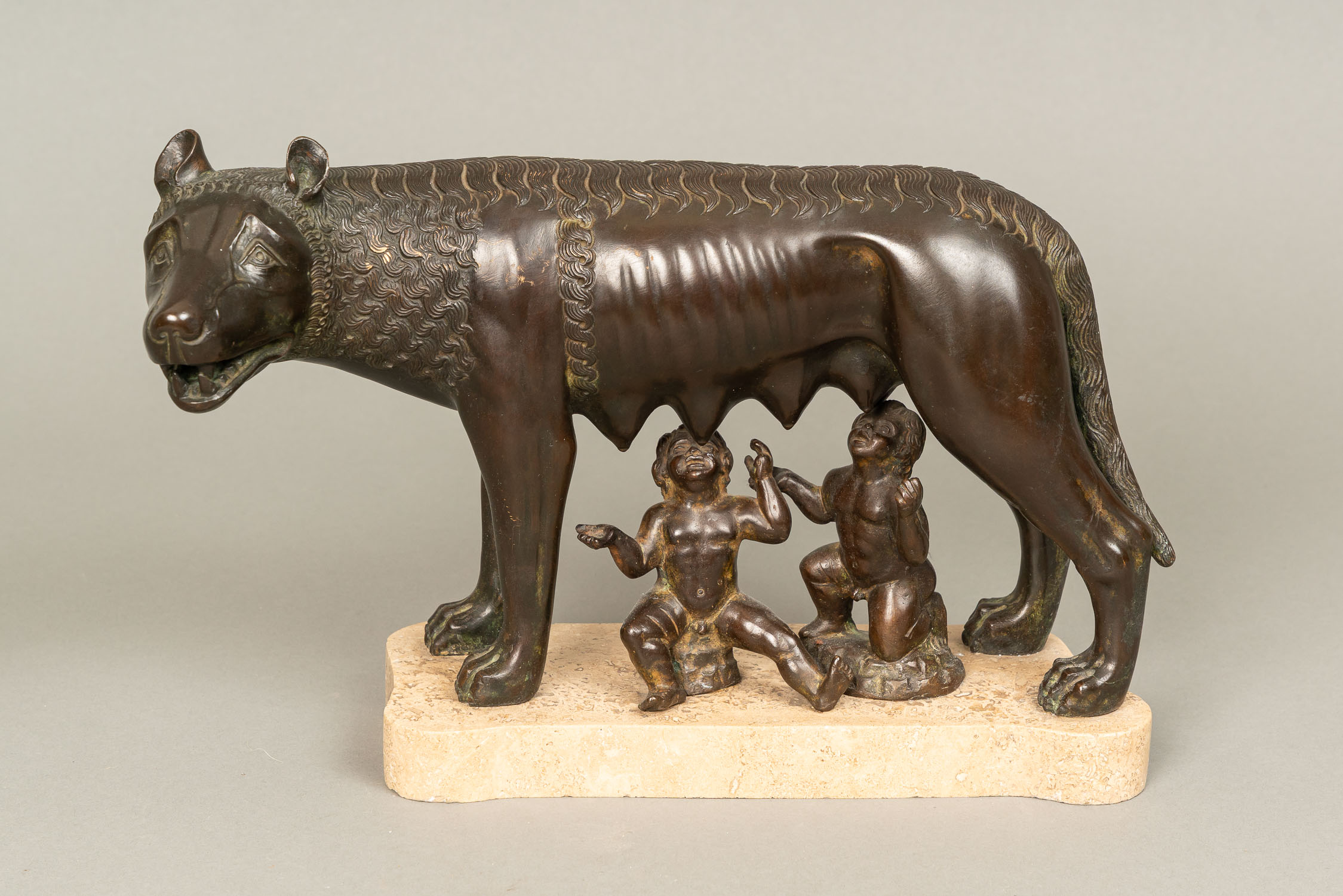 DEUTSCH AUCTIONEERS Lot012 in DetailLupa Romana, bronze cast with original patina. On marble plinth. Late 19th Century. 21 x 32 cm.
