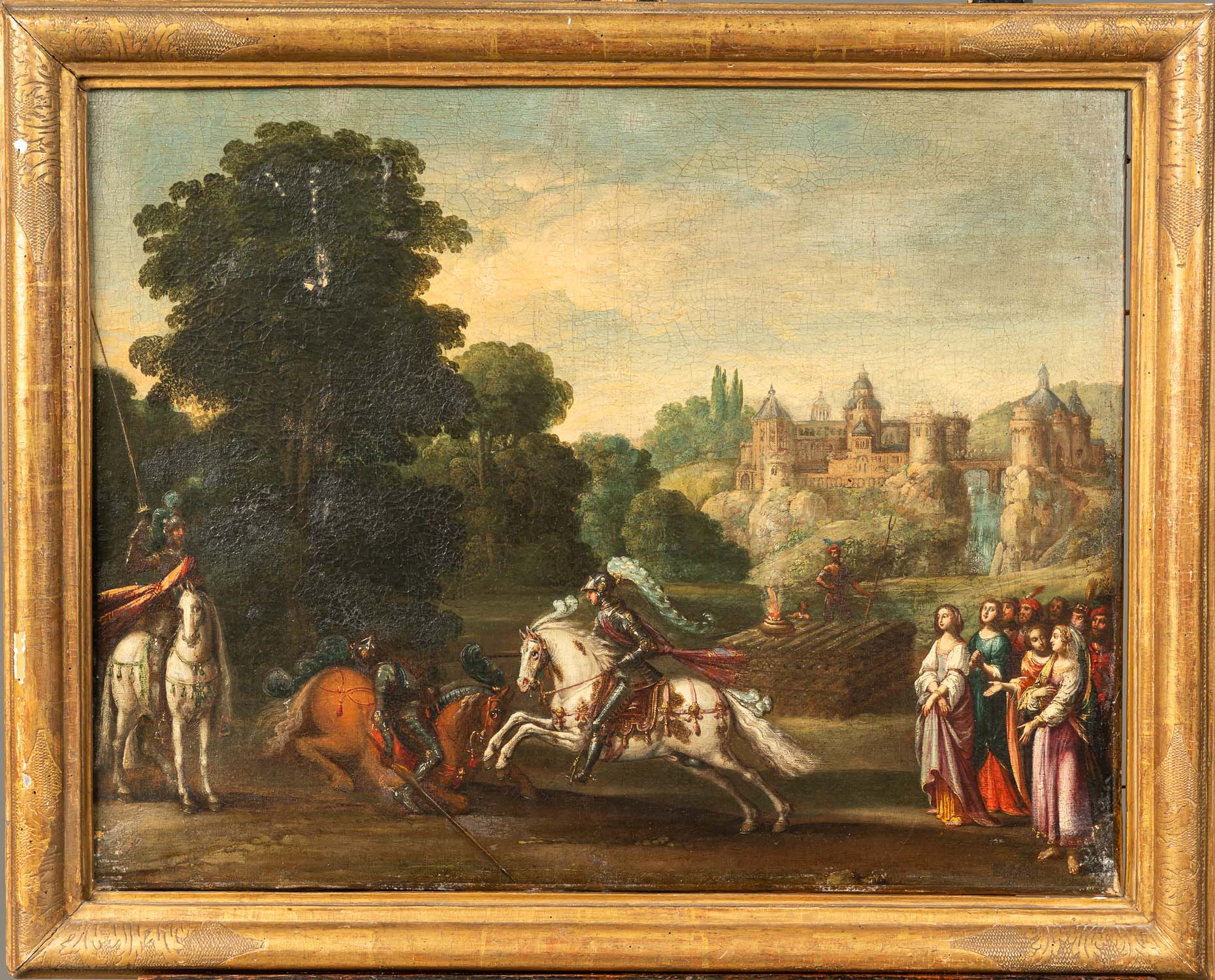 DEUTSCH AUCTIONEERS Lot018 in DetailPaul Bril (1554-1626)-circle, Tournament in Landscape with court ladys and castle. Oil on canvas. Famed. 50 x 62 cm