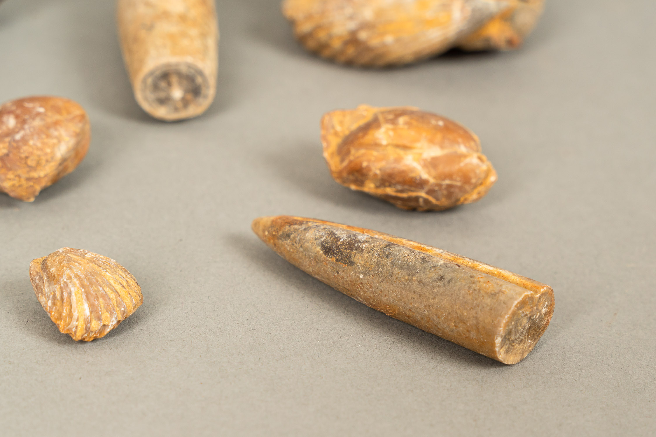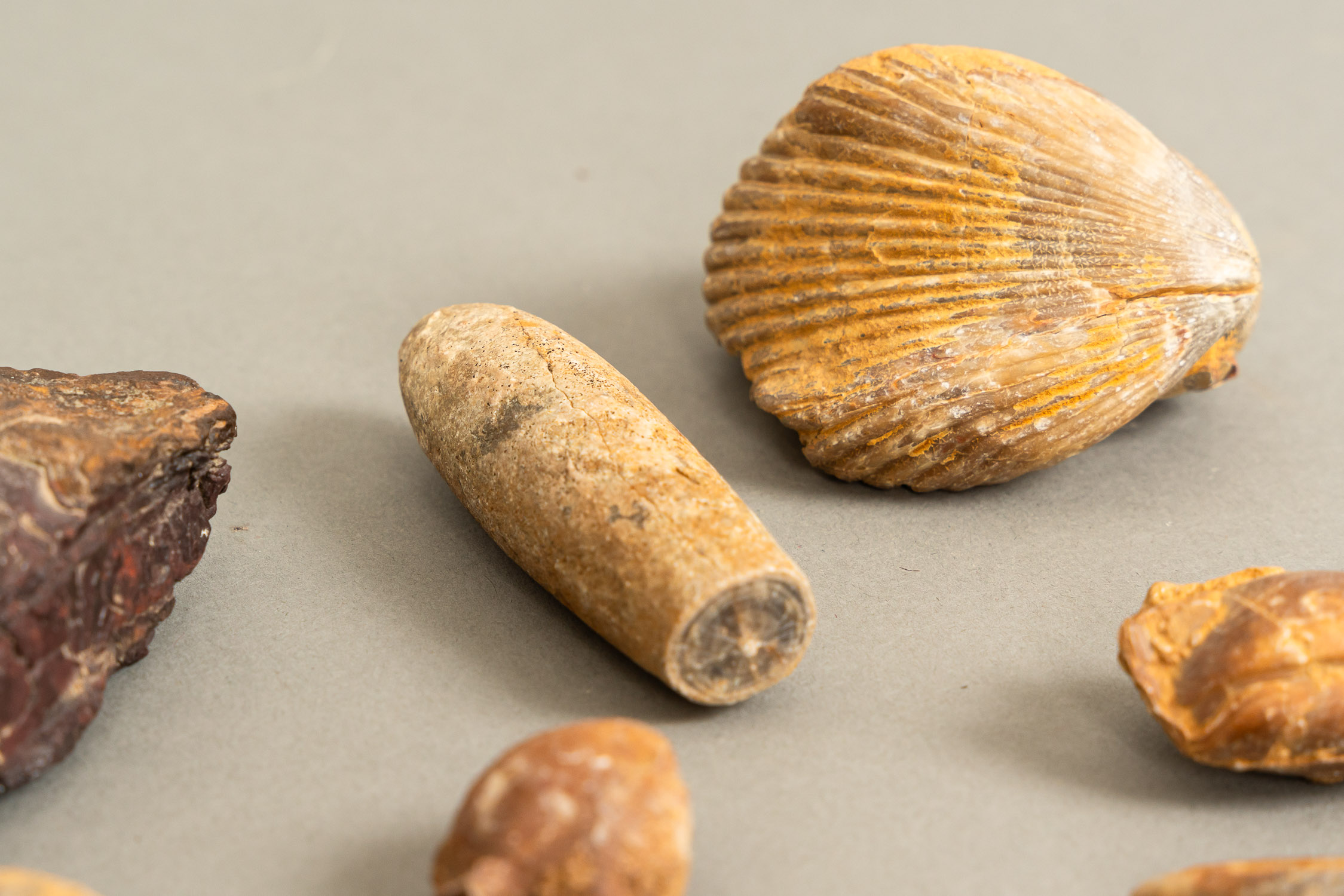Collection of Fossils, eight items, different sizes and conditions. The hammer price will go directly to the social help of the Caritas of Vienna, Provenance; estate found Erzdiozese Wien.