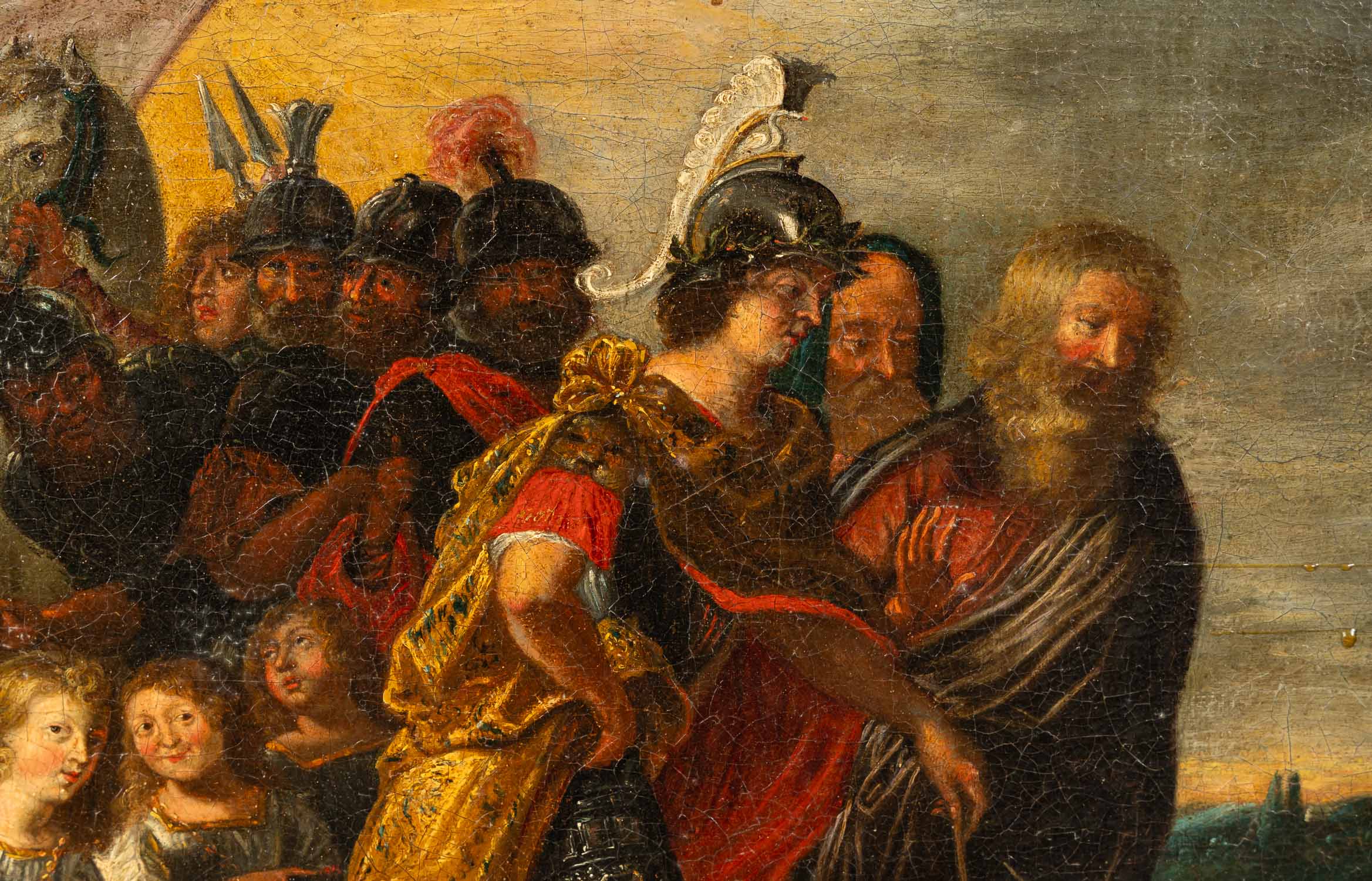 Jan Erasmus Quellinus ( 1634-1715) – attributed, Alexander and Diogenes . Oil on canvas on wood. Framed. 48 x 65 cm
