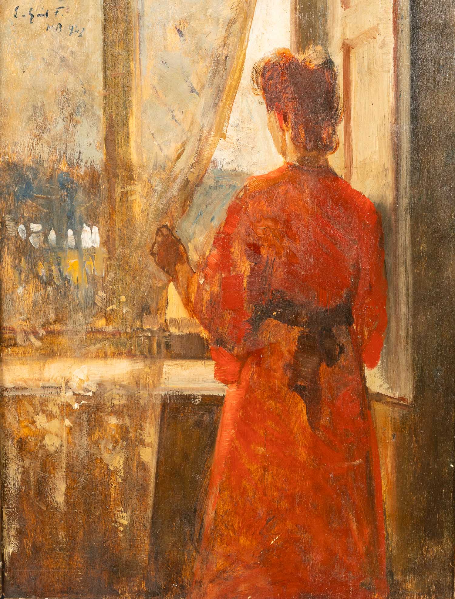 Francoise Gall (1912-1987)- attributed, Lady at window. Oil on board. Signed upper left and dated 1943. 50 x 40 cm