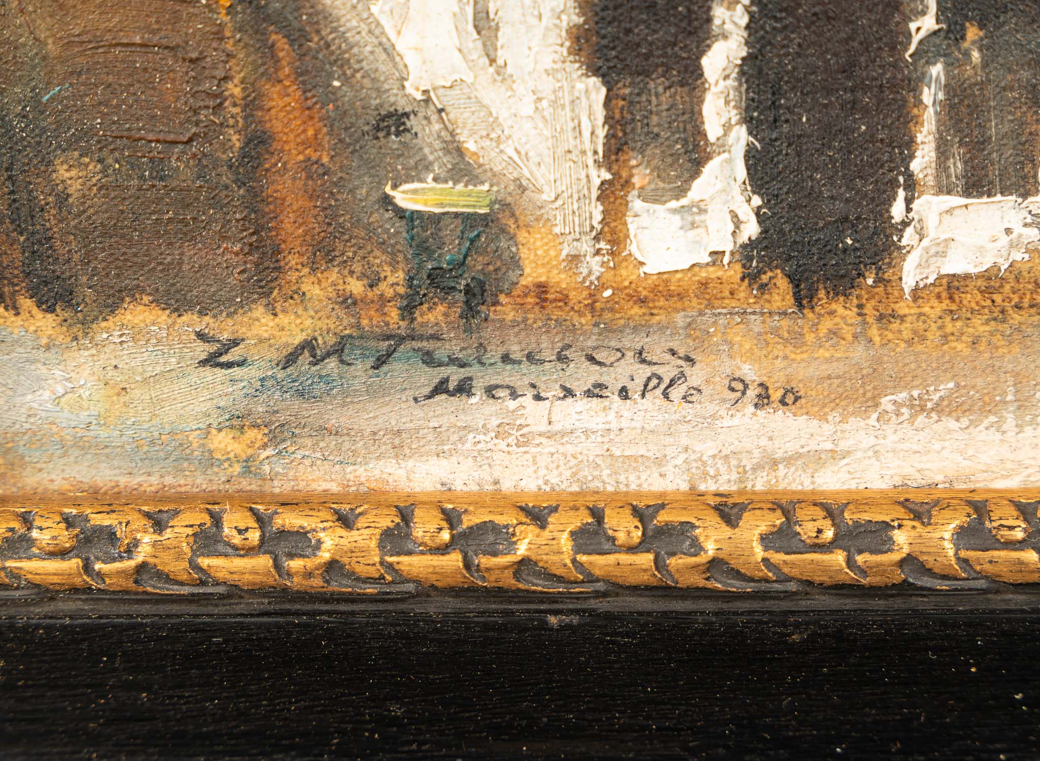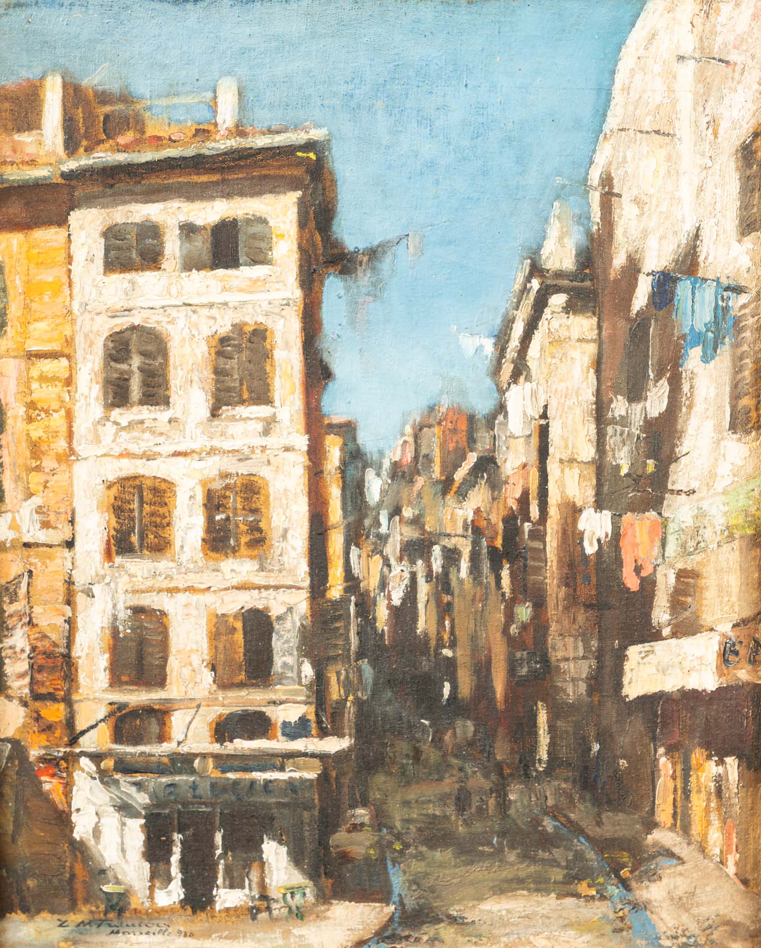 French artist around 1930, Street in Marseille . Oil on canvas. Framed. Signed and dated 1930 . 41 x 32 cm