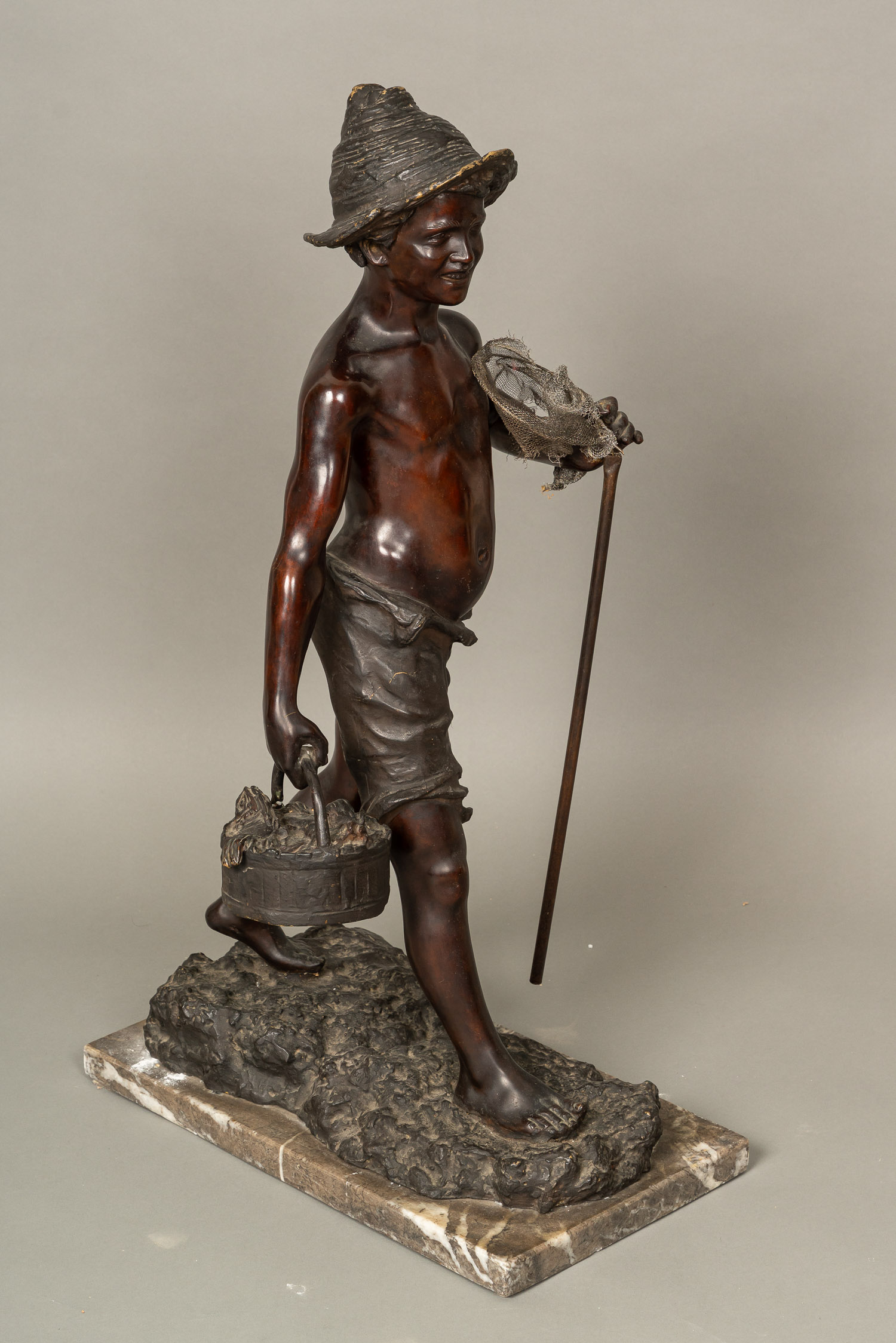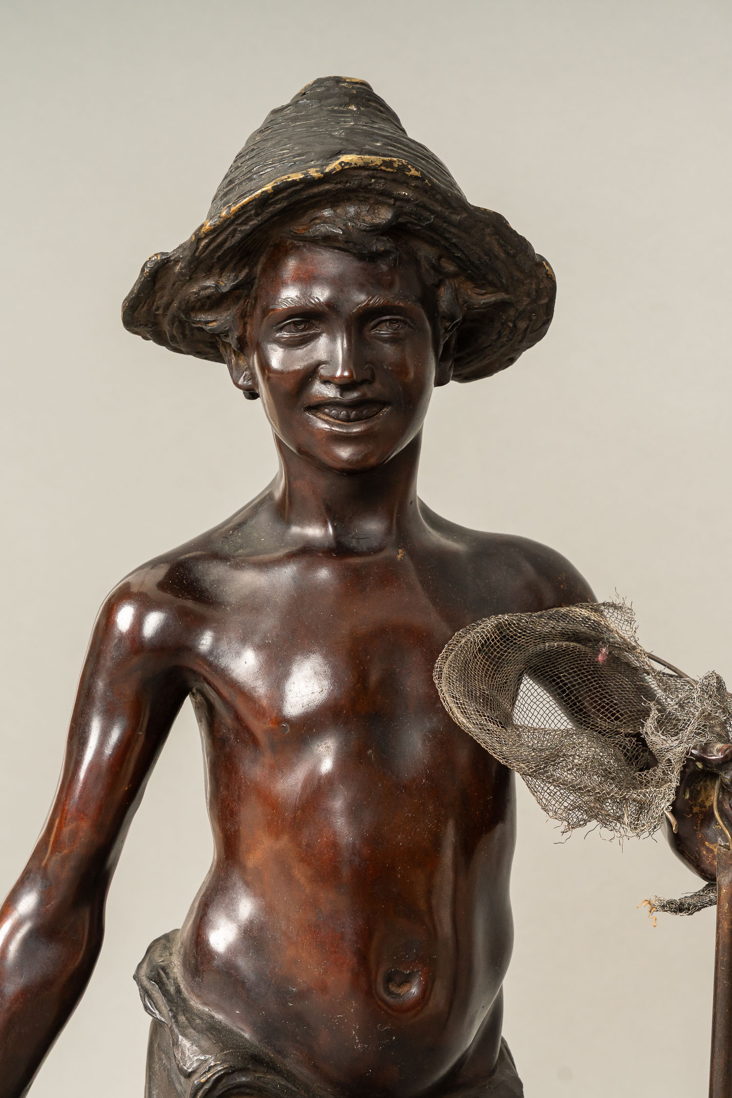 Giovanni de Martino (1870-1935) – Attributed, Neapolitan fisher boy. Bronze cast with original patina on marble base. 85 cm high.