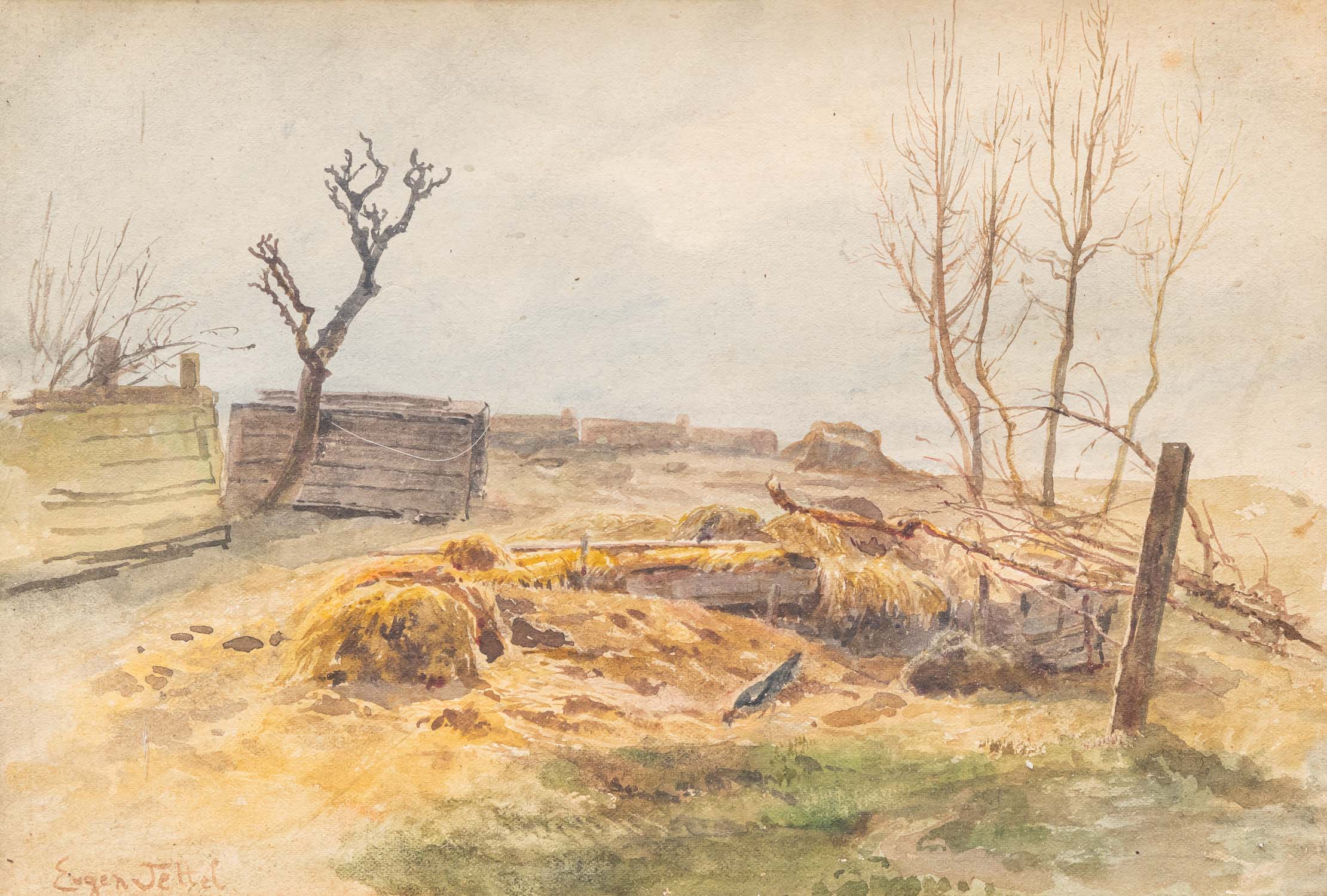 Eugen Jettel (1845-1901)- attributed, Landscape. Watercolour on paper. Signed. Framed. 16 x 24 cm