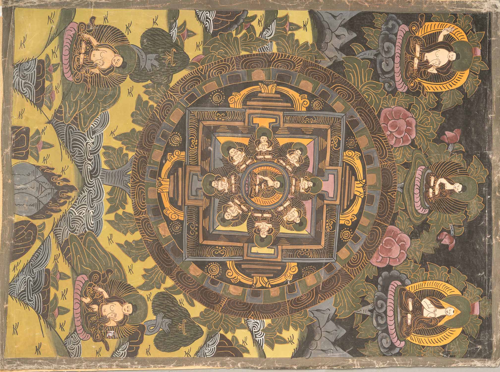 3 Thangkas , Body colours and other techniques on paper,textile, Three items. 40 x 30 cm