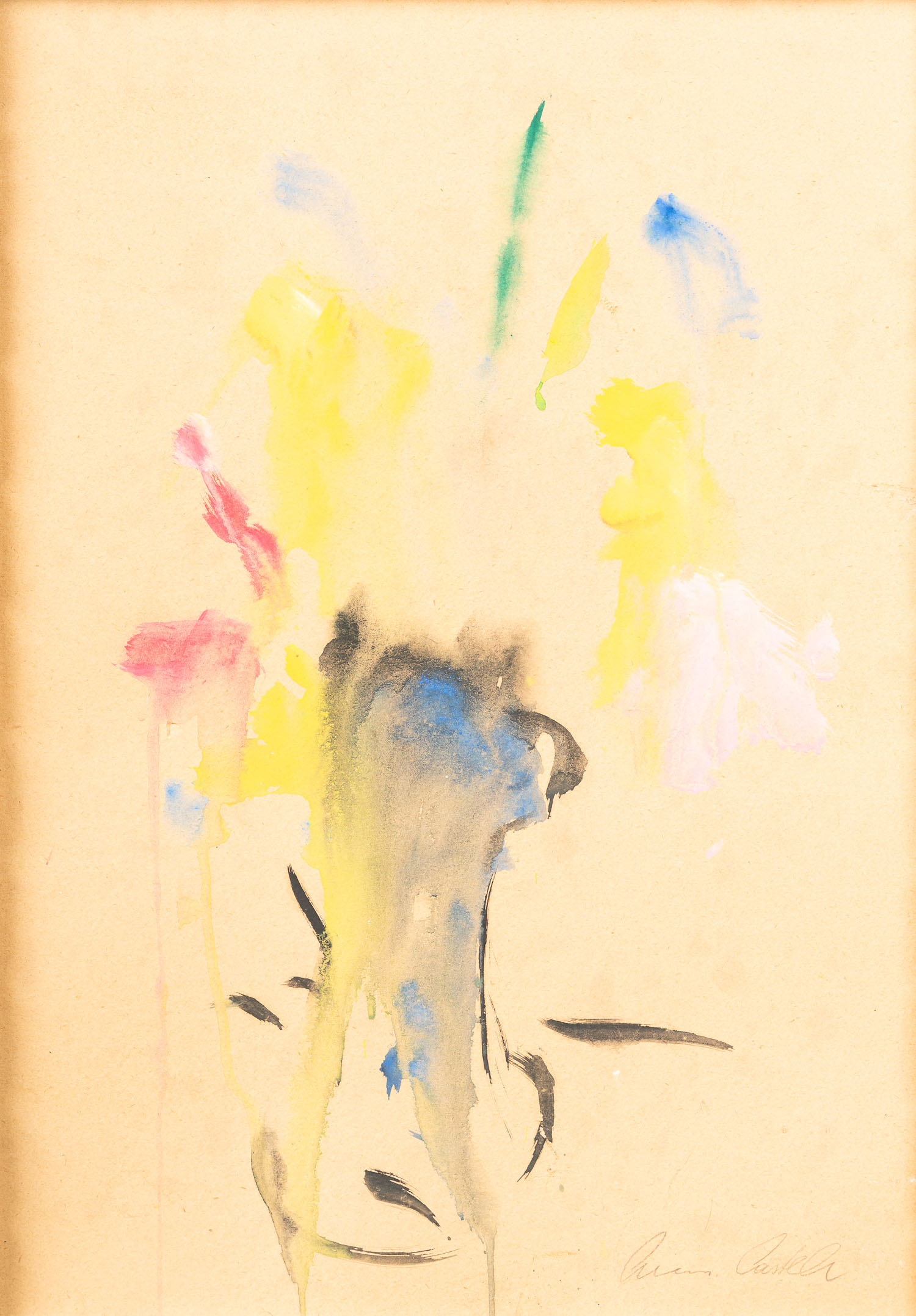 Luciano Castelli born 1951- attributed, Still life. Watercolour on paper. Signed bottom right. Framed. Described on the reverse. 65 x 49 cm