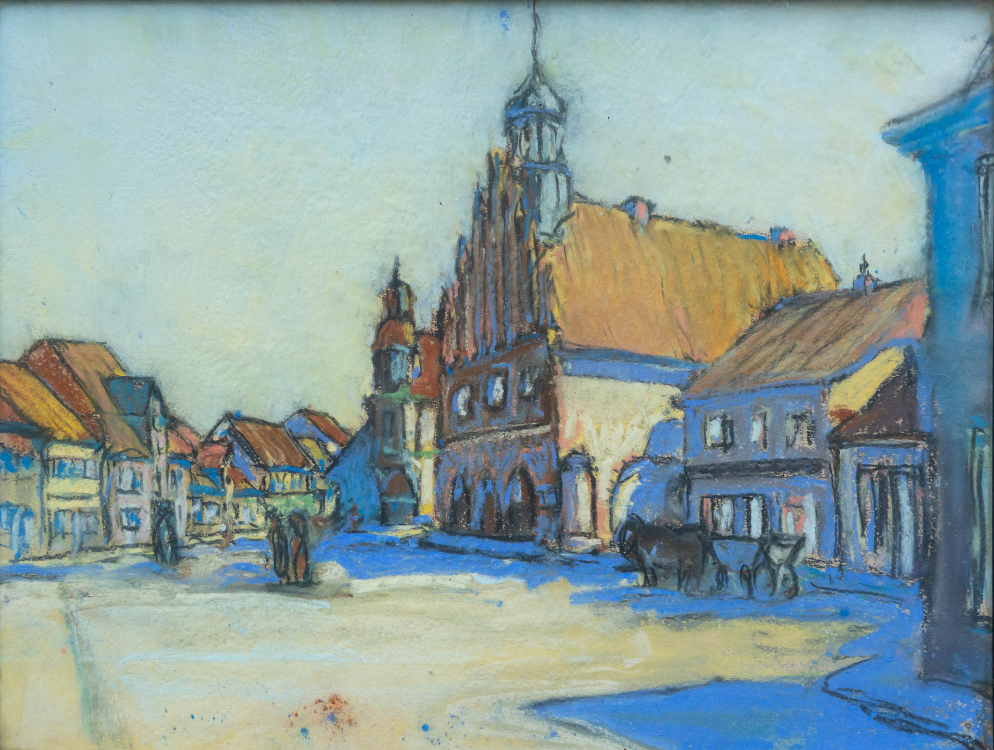 Eastern Artist around 1920, Market place . Pastel on paper. On the reverse description date and signature. Framed. 23 x 30 cm