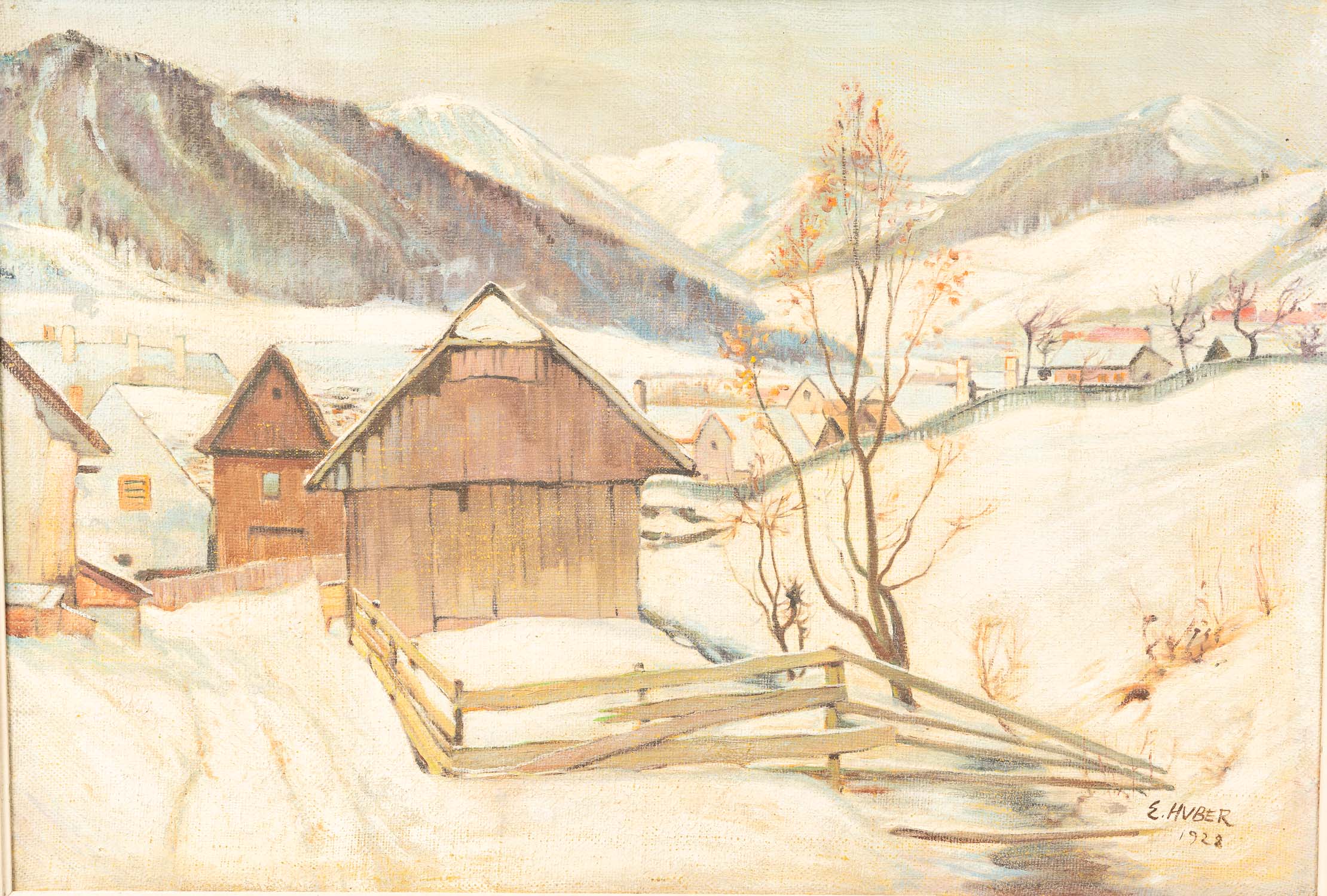 Ernst Huber (1895-1960)-attributed, Winter Landscape with Houses, oil on canvas 60x90. Cm freamed. Signed and dated