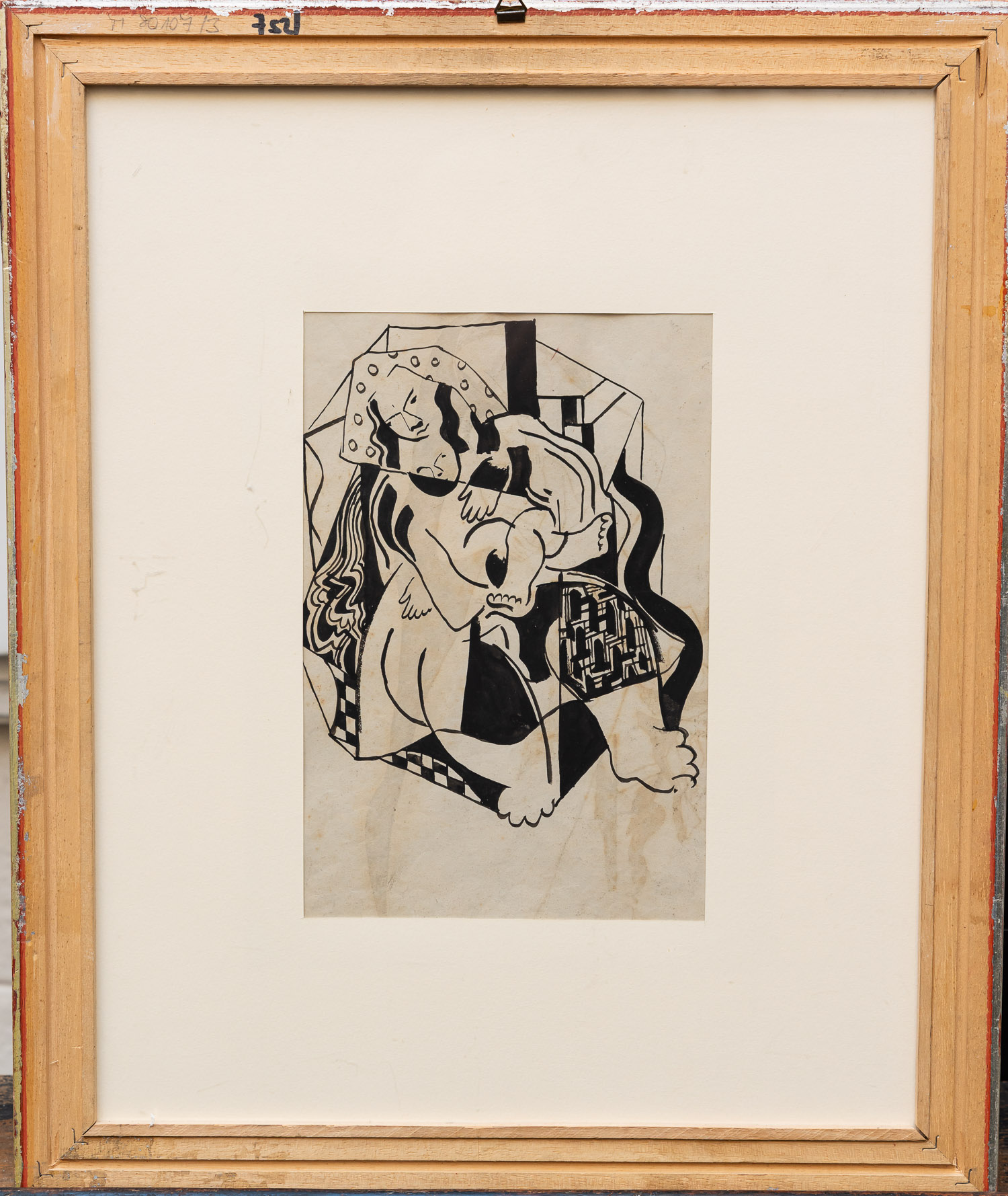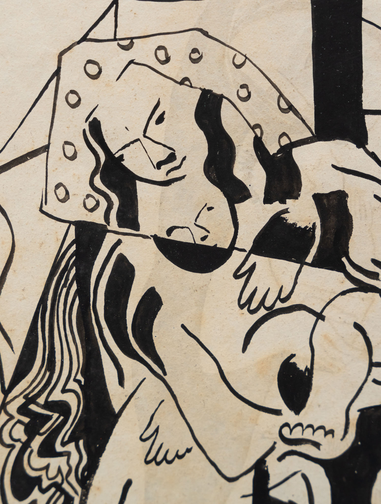 Hungarian Artist first half 20th Century, Mother and child. Painted on two sides , black ink and other techniques on paper. Framed. 31 x 22 cm