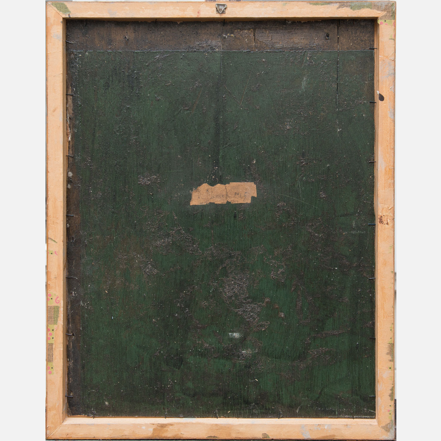Bauhaus Movement 20th Century, composition with number and letter. Oil on wooden board. On the reverse old paper label. Damages. Framed. 60 x 54 cm.