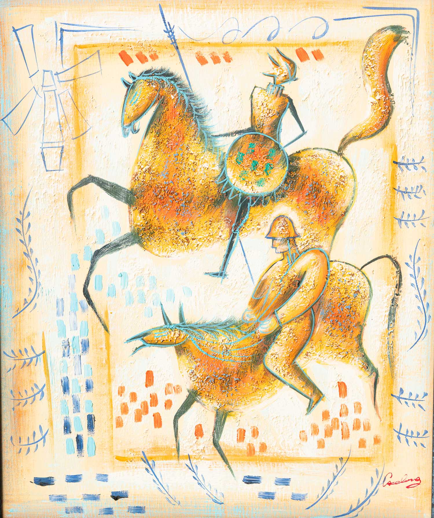 Spanish Artist 20th Century, Don Quijote. Oil on canvas. Signed, framed. 60 x 50 cm.
