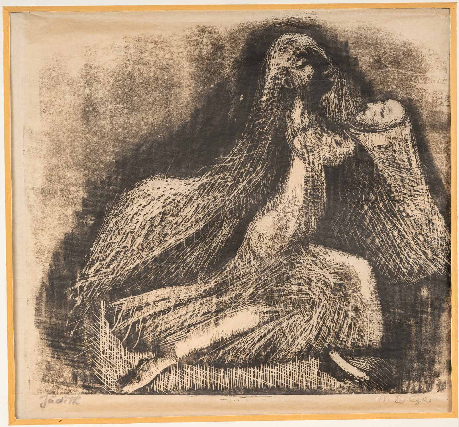 Maria Biljan Bilger (1912-1997)-graphic, Judith , etching on paper. Described in passepartout . 38 x 42 cm . The hammer price will go directly to the social help of the Caritas of Vienna, Provenance; estate found Erzdiozese Wien.