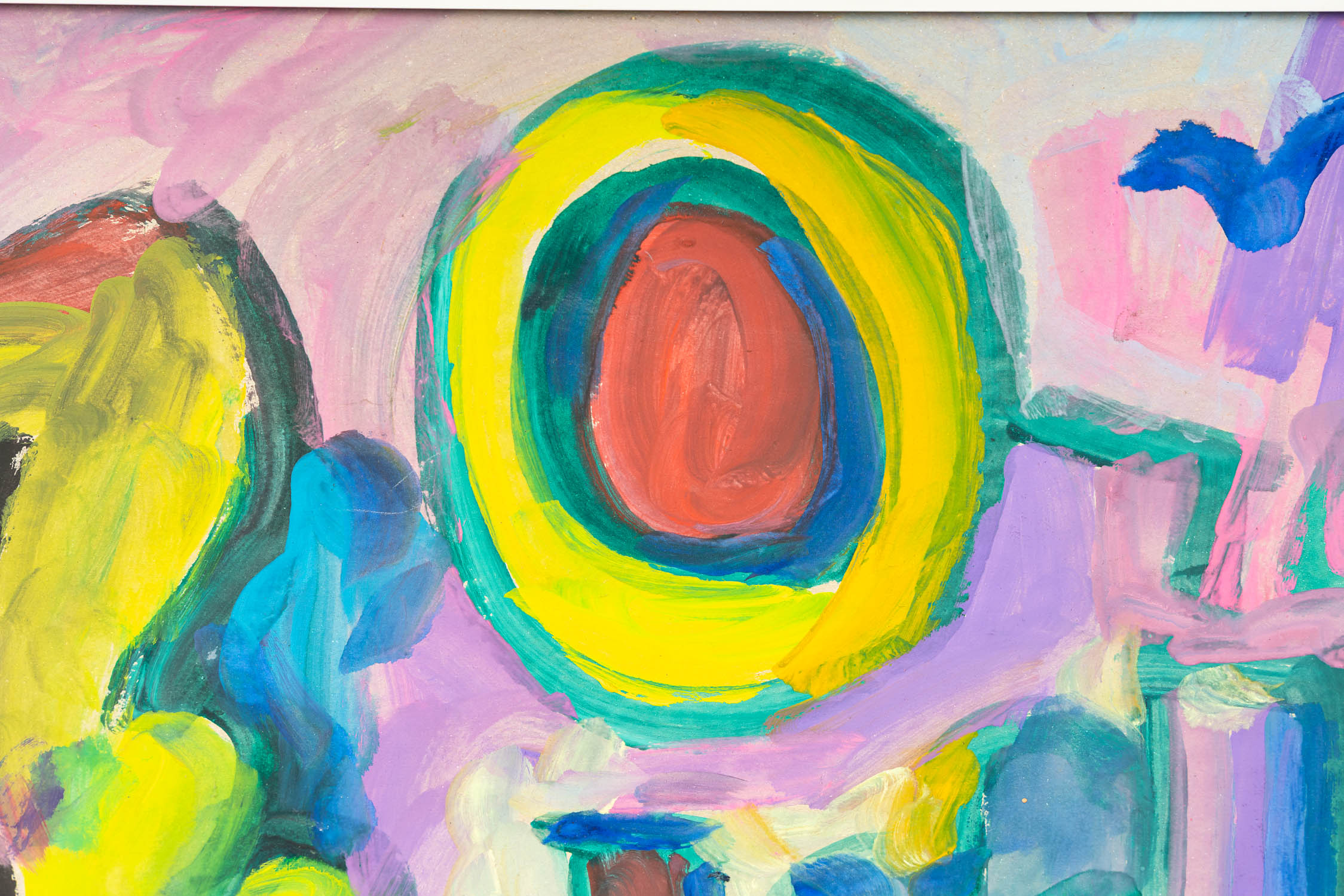 Miklos Nemeth (1934-2012), village. Acryl colours on paper. Framed. 72 x 100 cm.