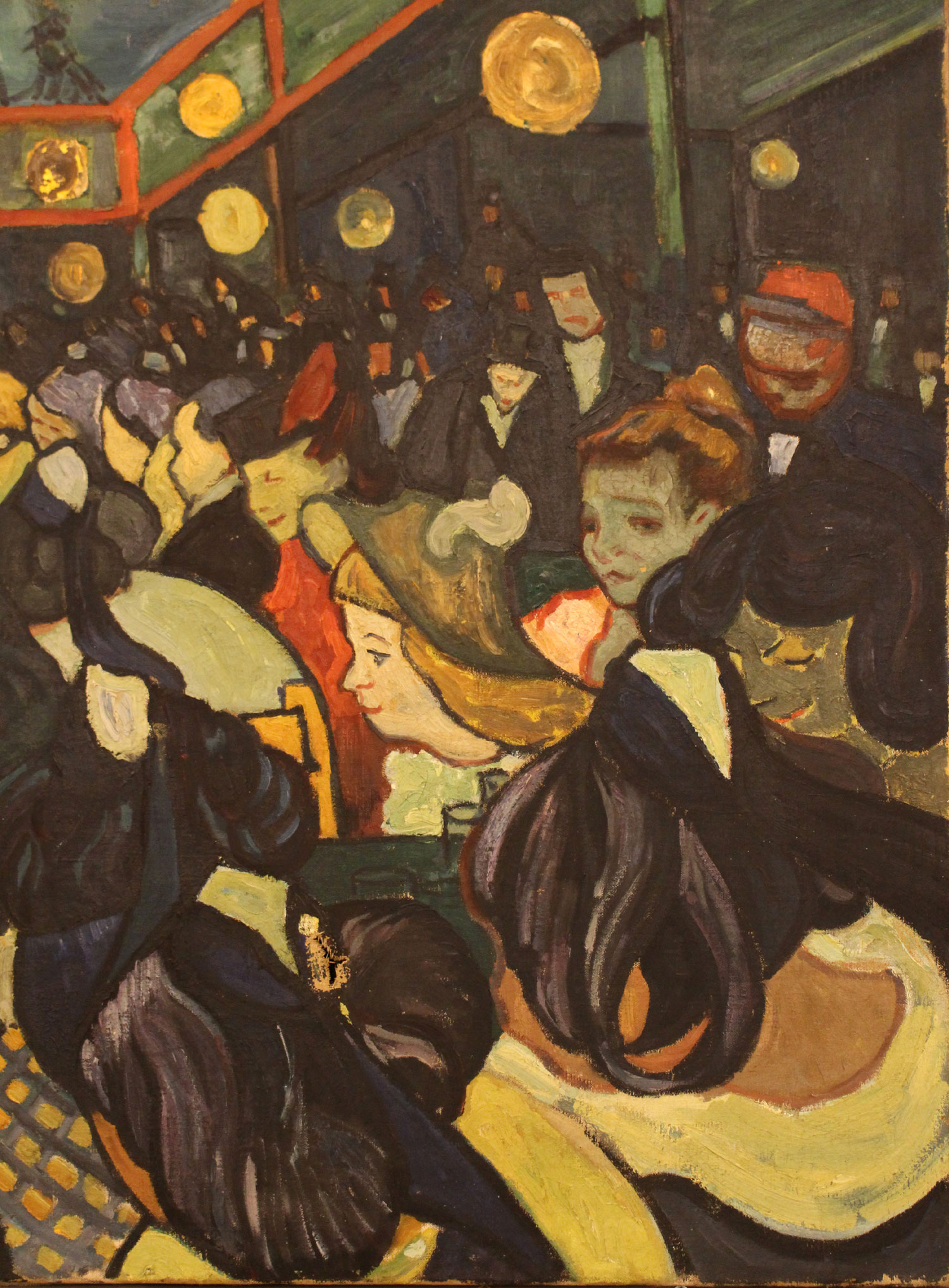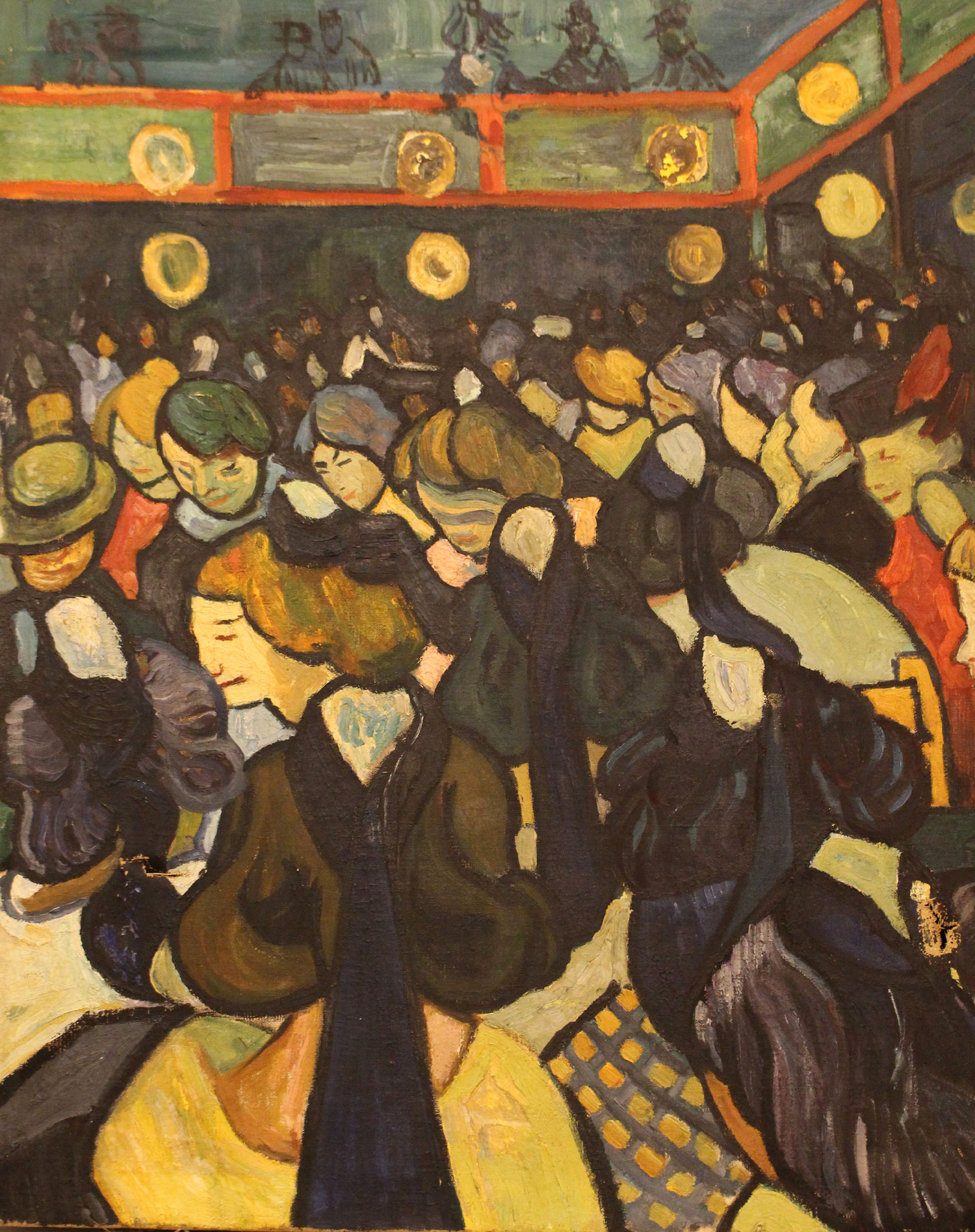Vincent Van Gogh (1853-1890) – Circle, the dance hall in Harles. Oil on canvas. 65 x 81 cm. Possibly a contemporary version of the famous painting on untouched old canvas with age cracks and small damages. Framed.