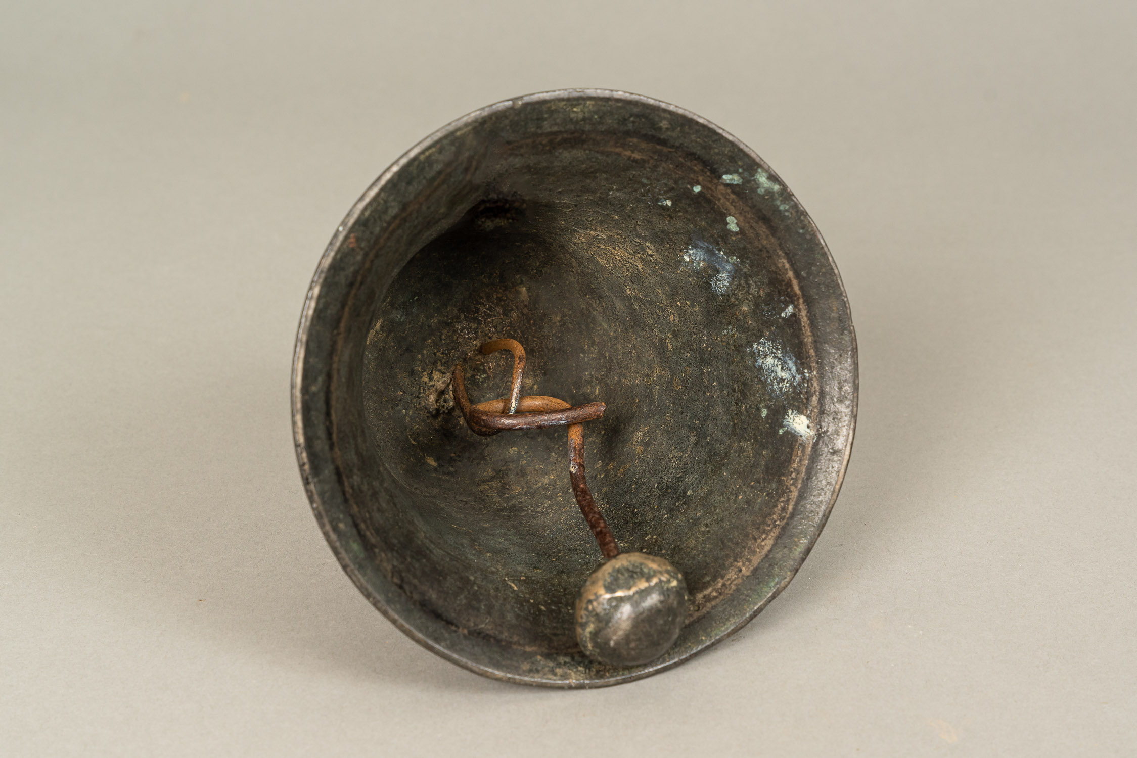 Tuscan Bronz Bell, traditional shape with Medici coat of arms. With iron mount. 16/17th Century. 15 cm high.