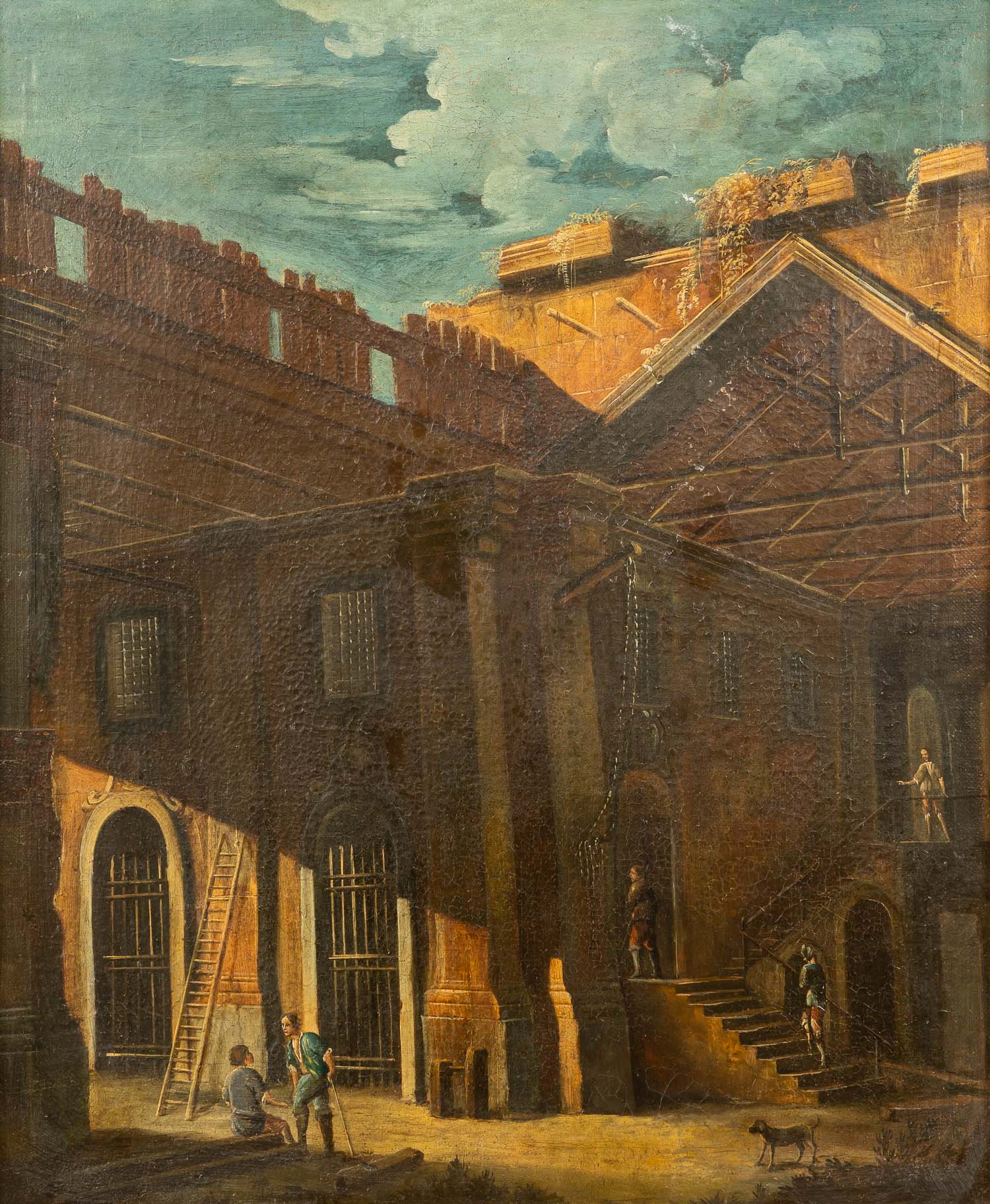 Niccolo Codazzi ( 1642 – 1693 ) - attributed, Architectural monuments with visitors. Oil on canvas. Framed. 75 x 62 cm