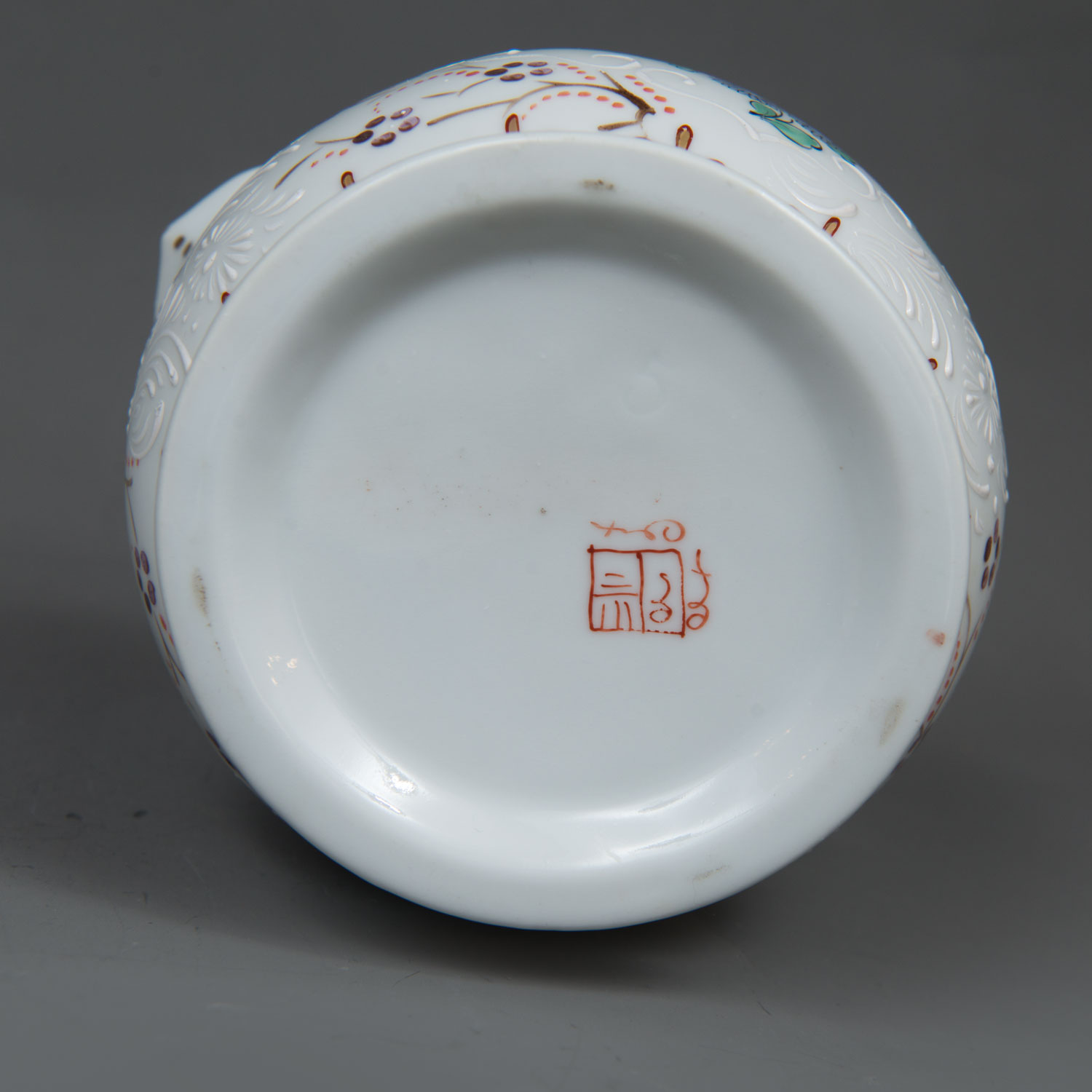 Compagnie des Indes, porcelain pot with painted decorations on white ground, glazed, bottom marked . 19Th Century. 18 cm high