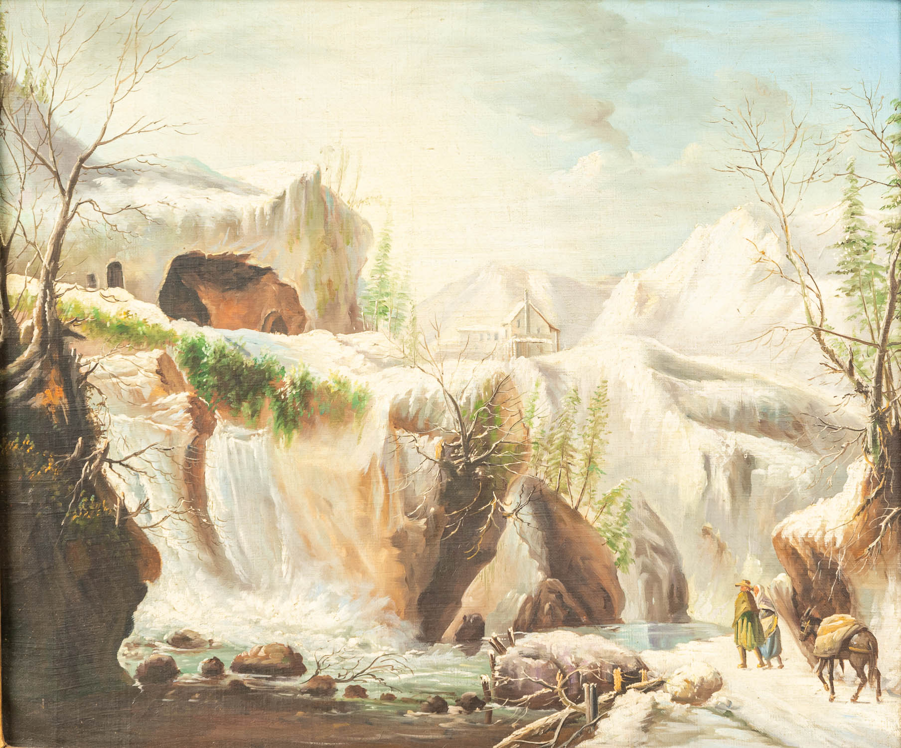 Francesco Foschi ( 1710- 1780) – manner, Winter landscape. Oil on canvas. Framed. On the reverse Gallery label E.J.Van Wissellingh Amsterdam. 50 x 62 cm