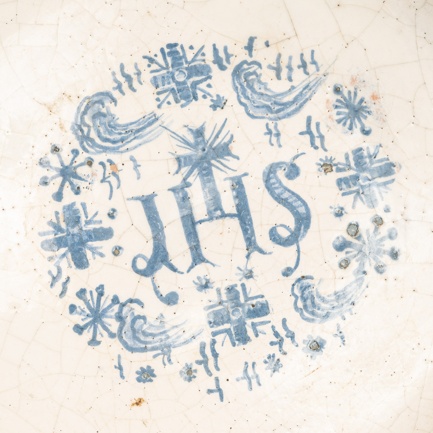 Italian Ceramic Dish, Deepened centre , bllue painted decorations on white ground glazed. 18Th Century. Diameter 30 cm