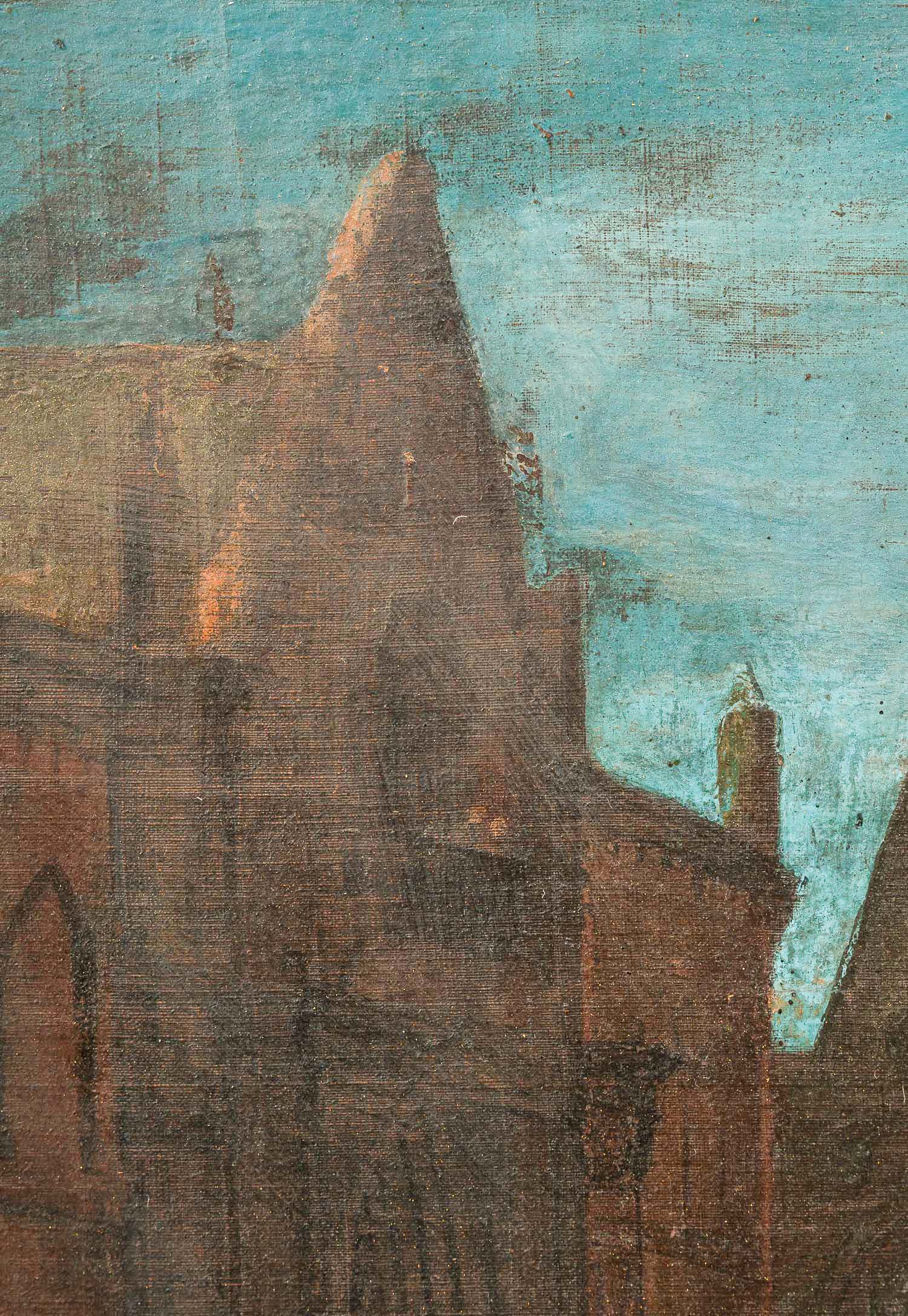Giovanni Migliara ( 1785 – 1837 ) – Attributed, Visitors by a church , oil on canvas, framed. 48 x 37 cm