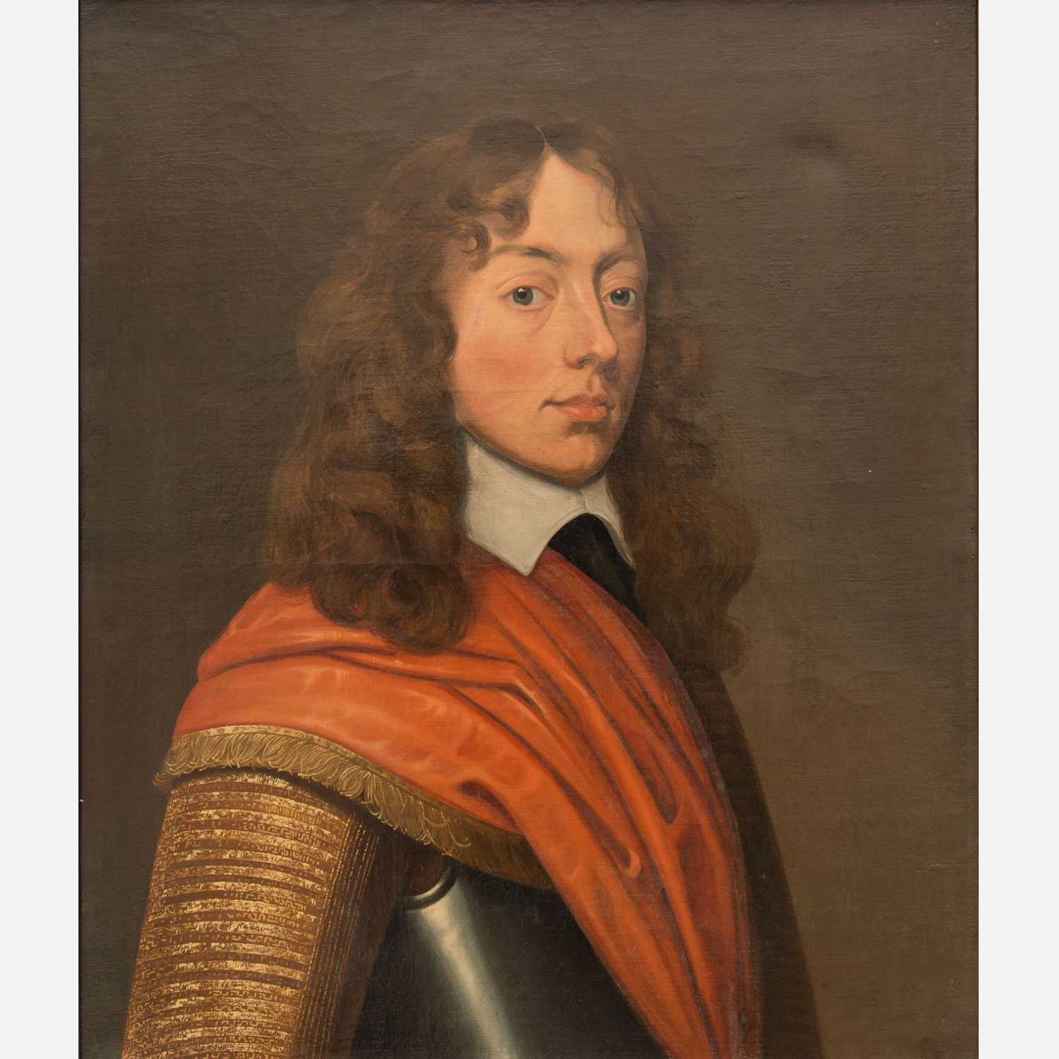 Gerrit van Honthorst ( 1592-1656) – attributed, Portrait of a young gentleman in half armour , oil on canvas, framed. 73X60 cm