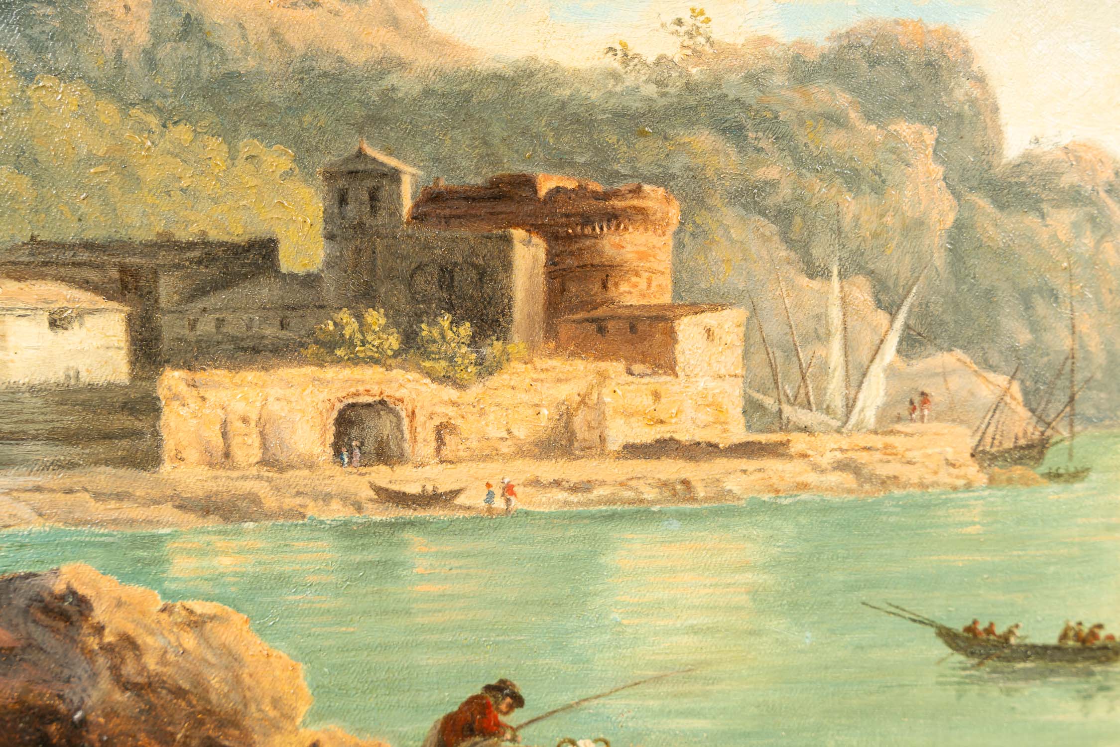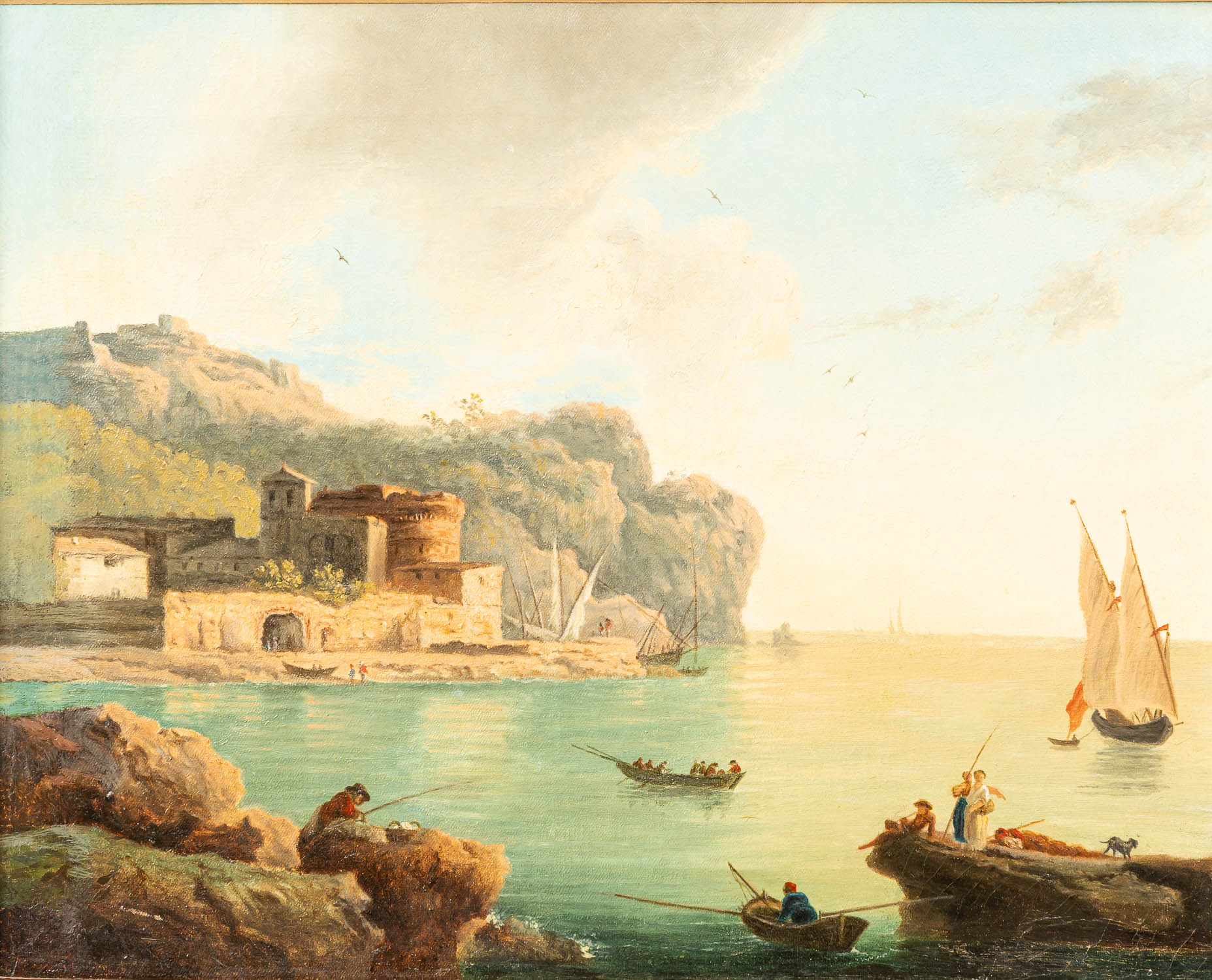 Claude Joseph Vernet ( 1714-1789)– follower , Coastal Landscape with boats . Oil on canvas. Framed. 34 x 42 cm