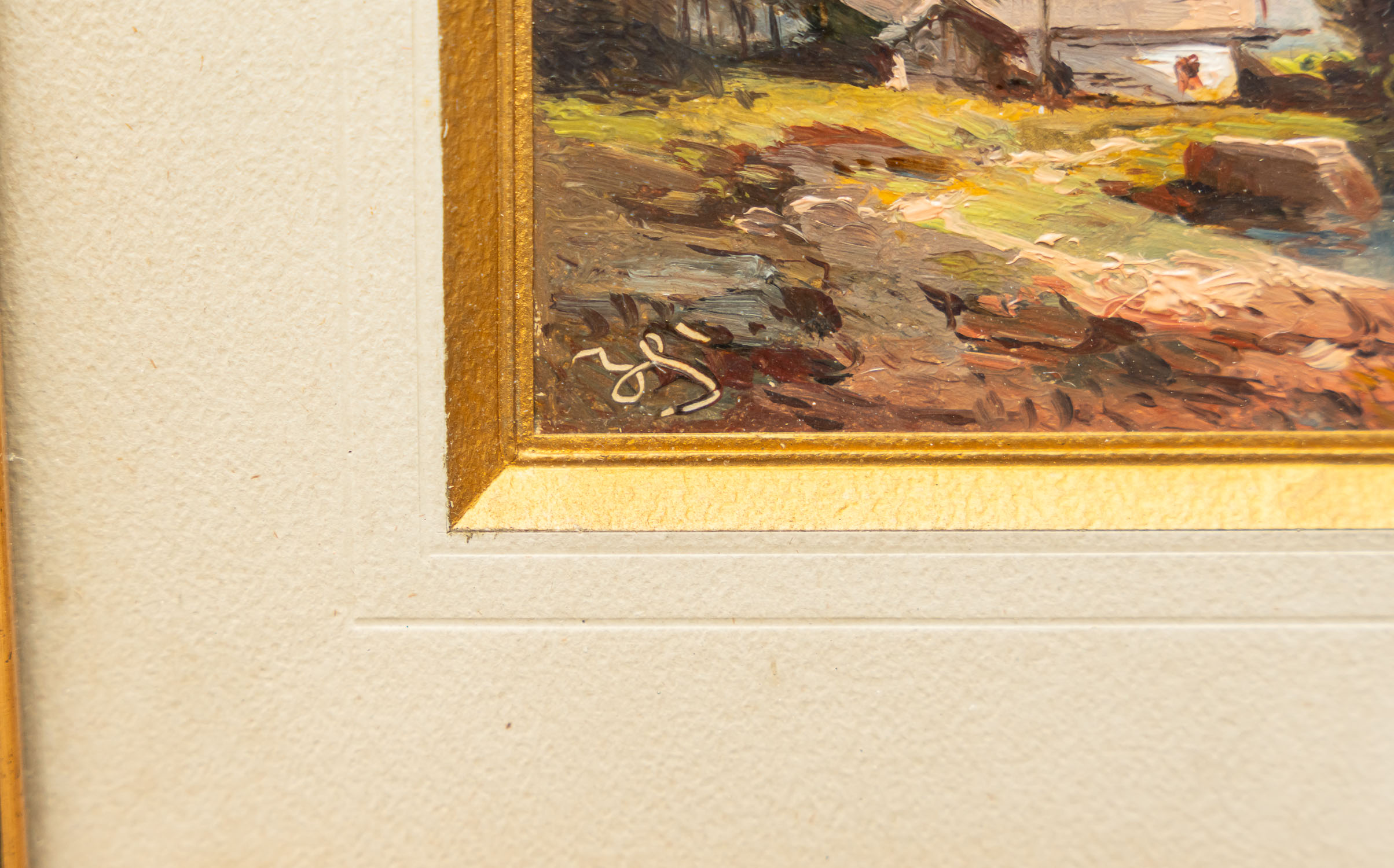 Carl Haunold ( 1832-1911), View of the Attersee . Oil on board. Monogrammed, described on the reverse. 10 x 17 cm