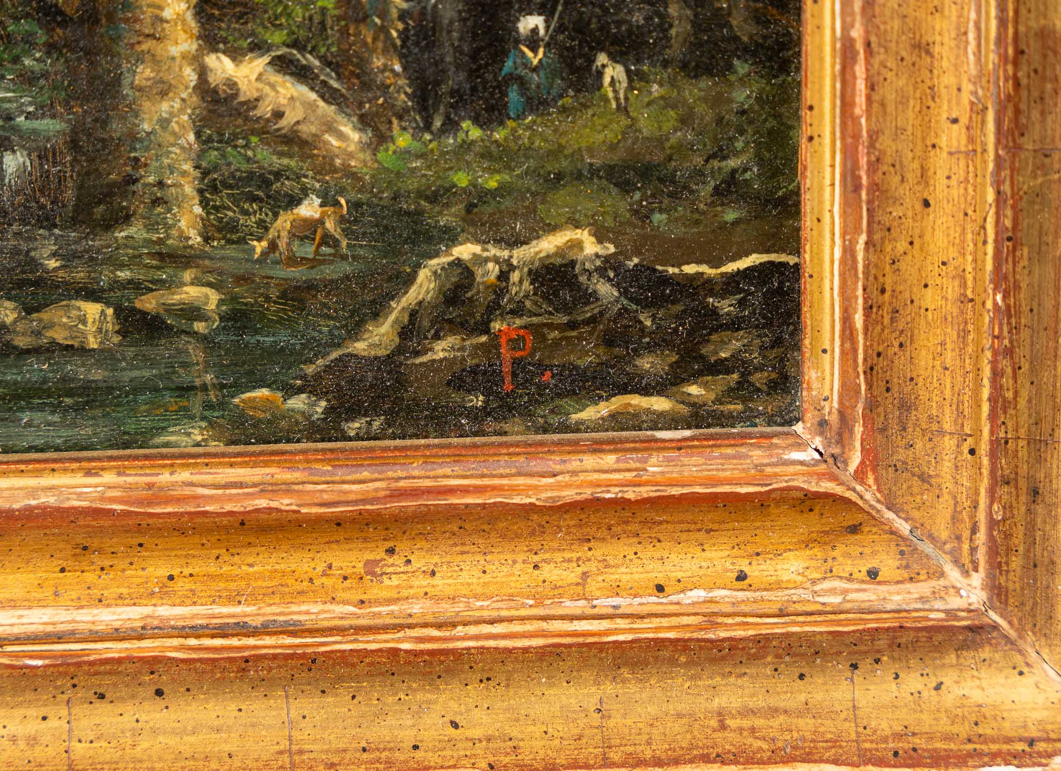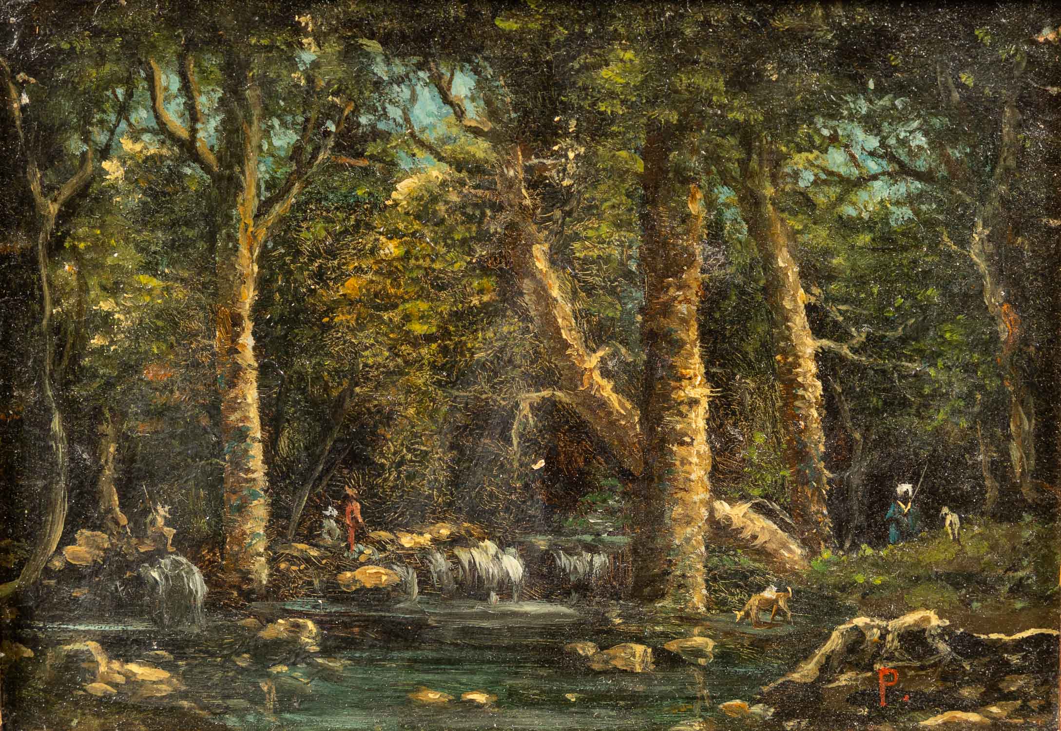Monogramist P. 19Th Century, Landscape with orientals by a river. Oil on board. Framed. 11 x 16 cm