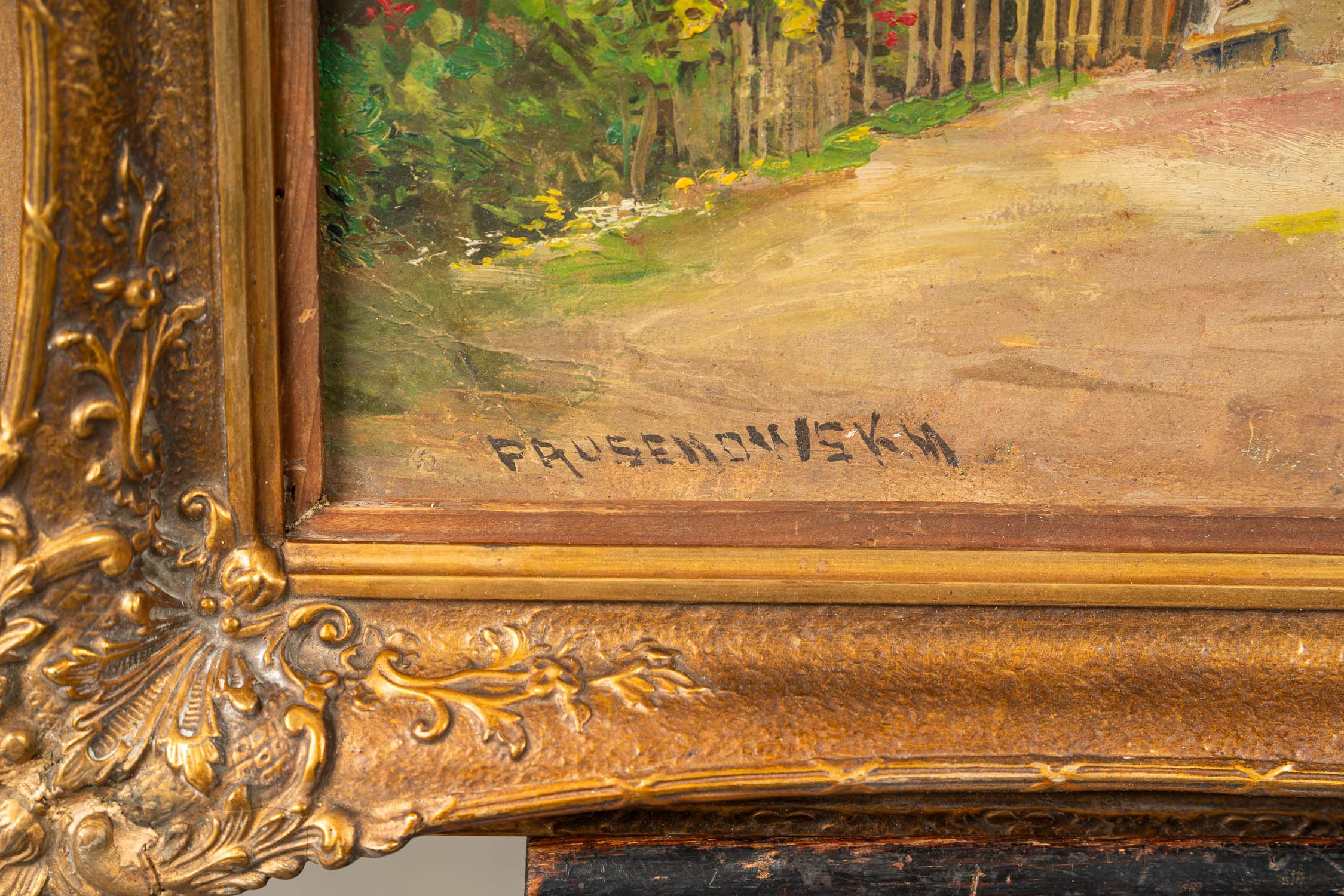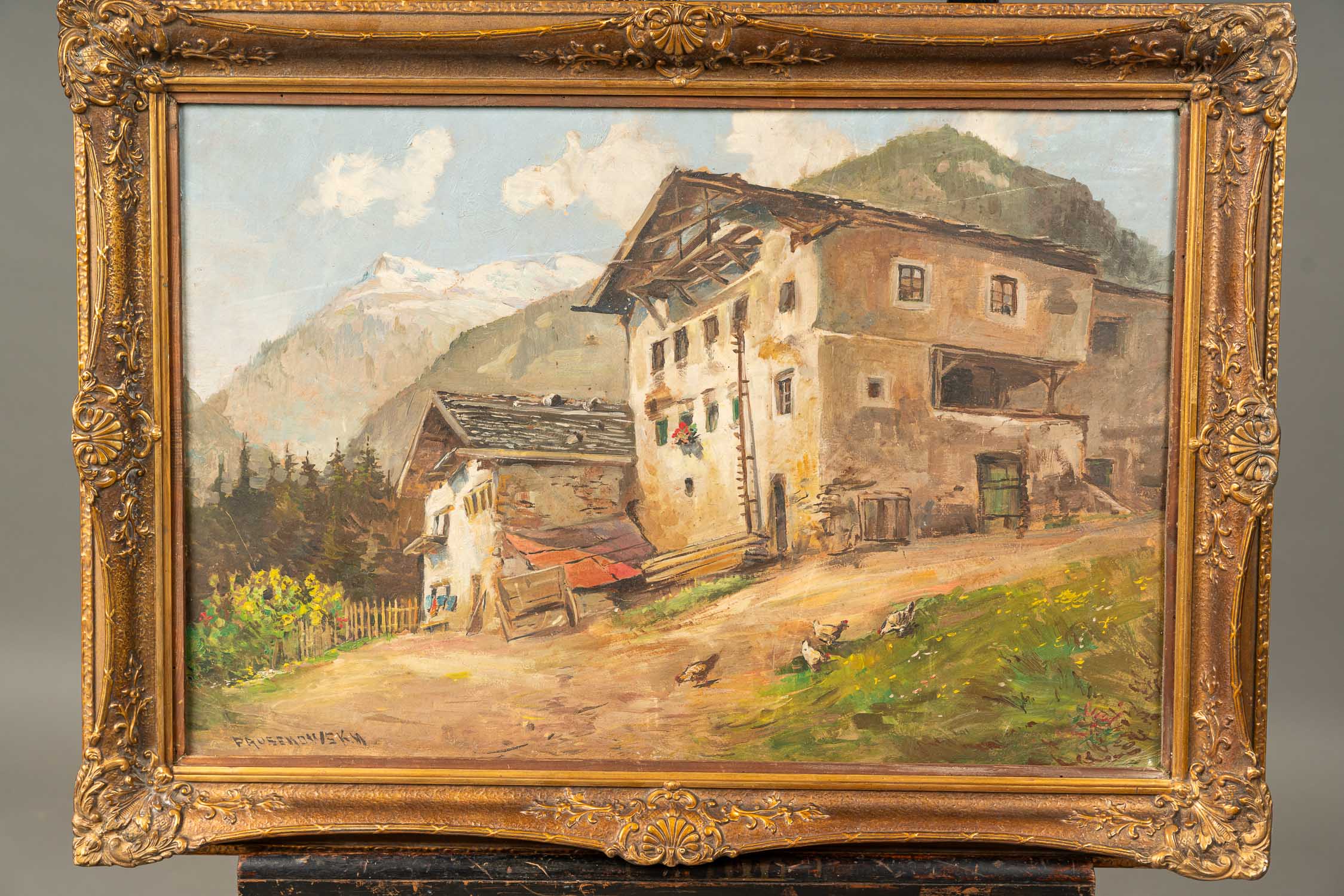 Artist around 1920, Farm in the Alps . Oil on board. Signed Pausenowsky? . Framed. 50 x 70 cm