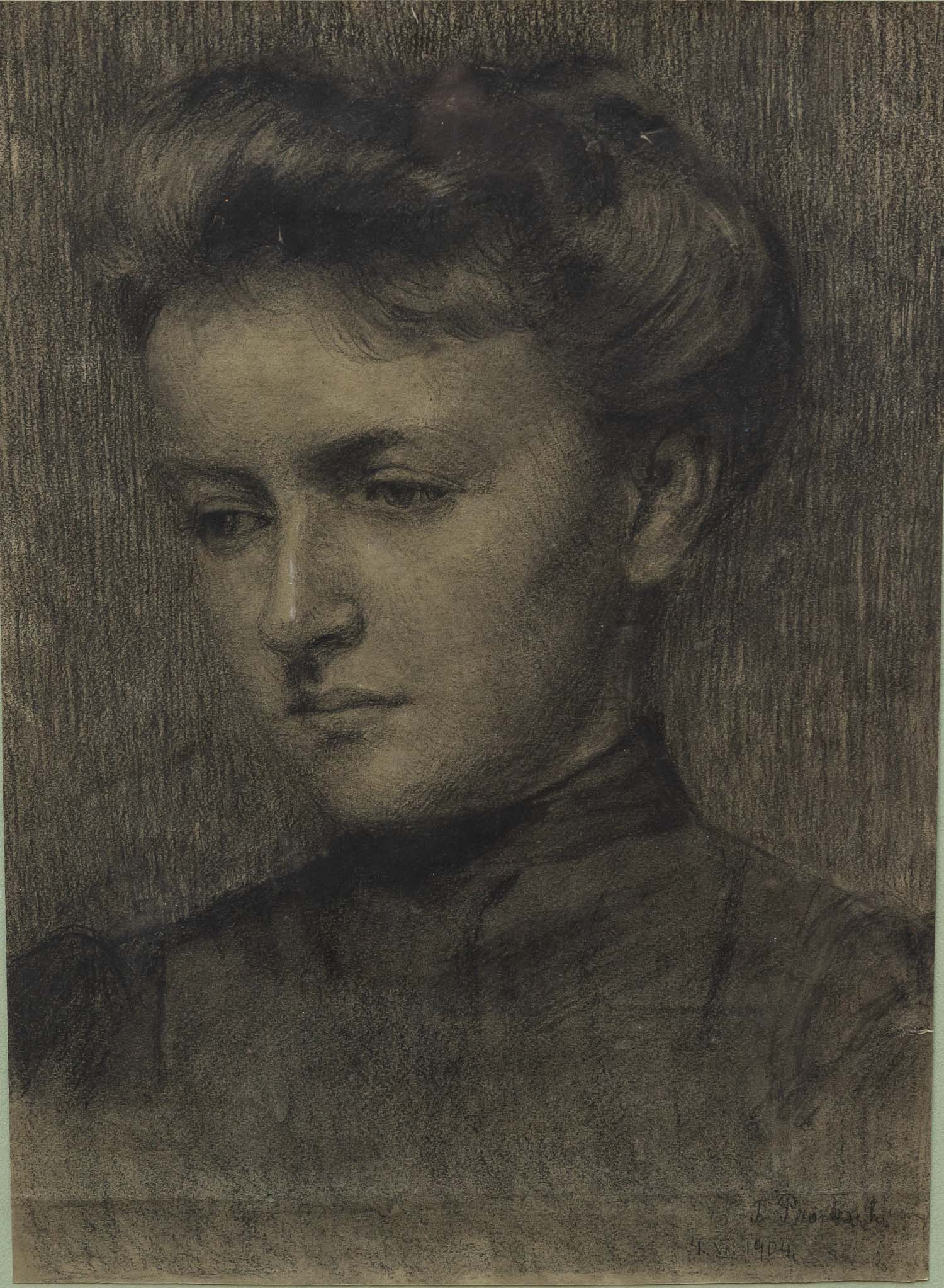 F. Proksch around 1900, Portrait of a girl. Black chalk on paper . Signed. Framed. 38 x 29 cm