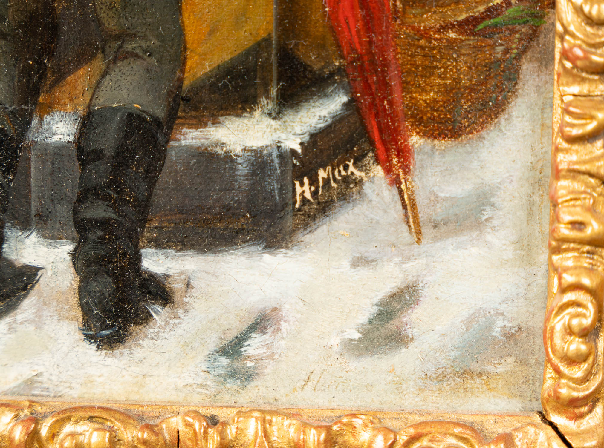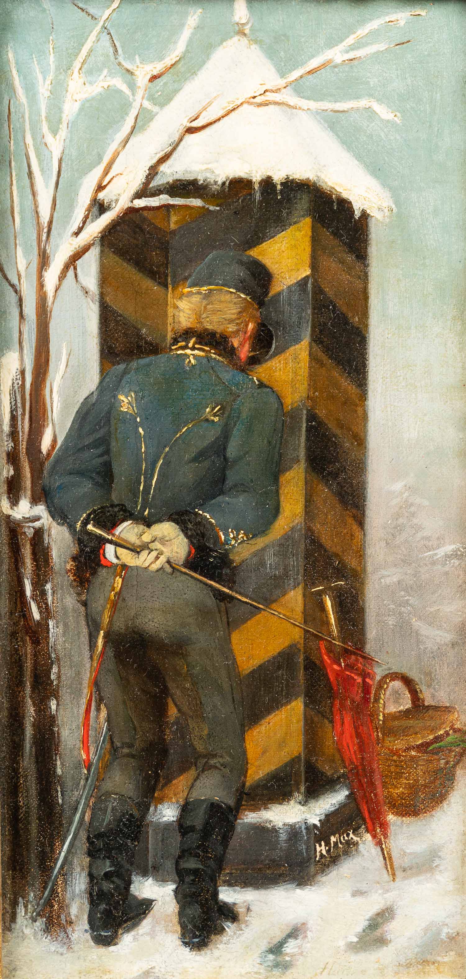 Austrian Artist 19th Century, Waiting time. Oil on canvas on board. Signed on the bottom. Frame . 25 x 30 cm