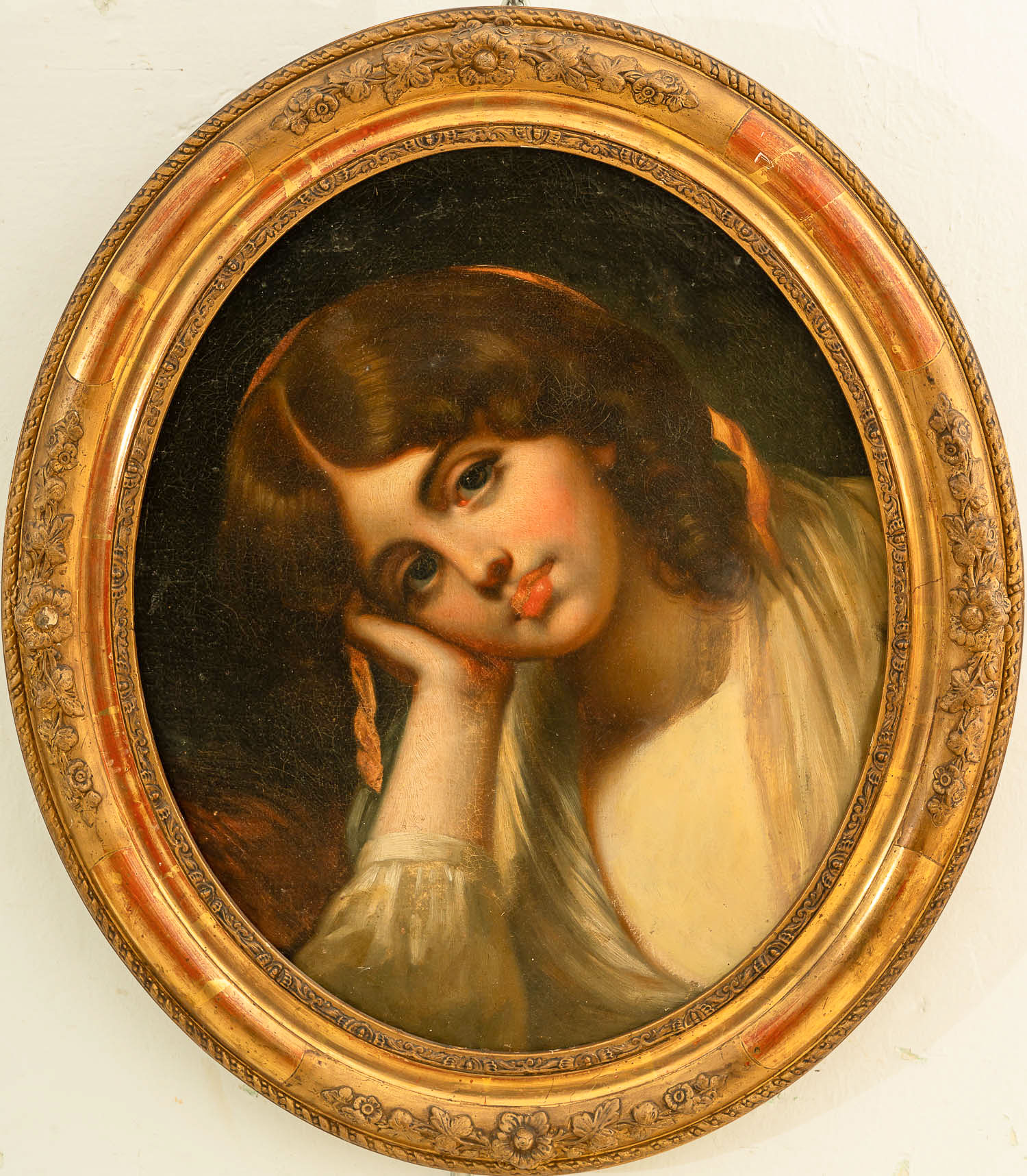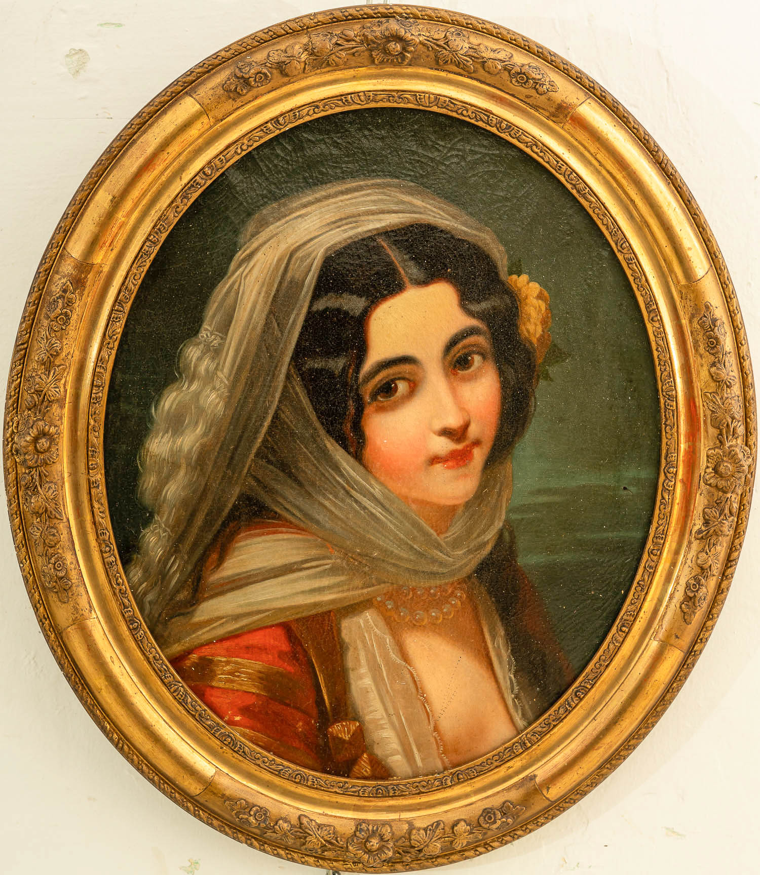 Henri Guillaume Schlesinger ( 1814-1893)-attributed , Pair of girl portraits , oval in original gilded frames , a pair. 45 x 37 cm