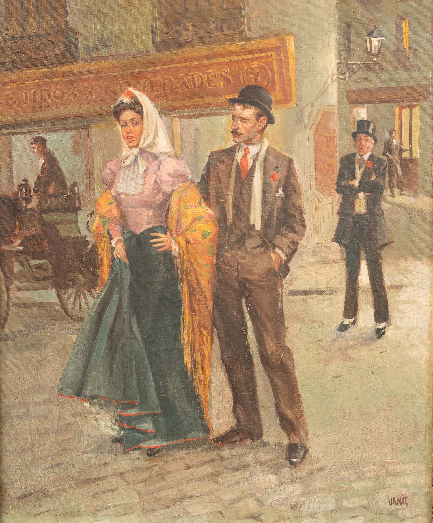 Spanish Artist around 1900, The attraction . Oil on canvas. Signed bottom right. Framed. 46 x 38 cm