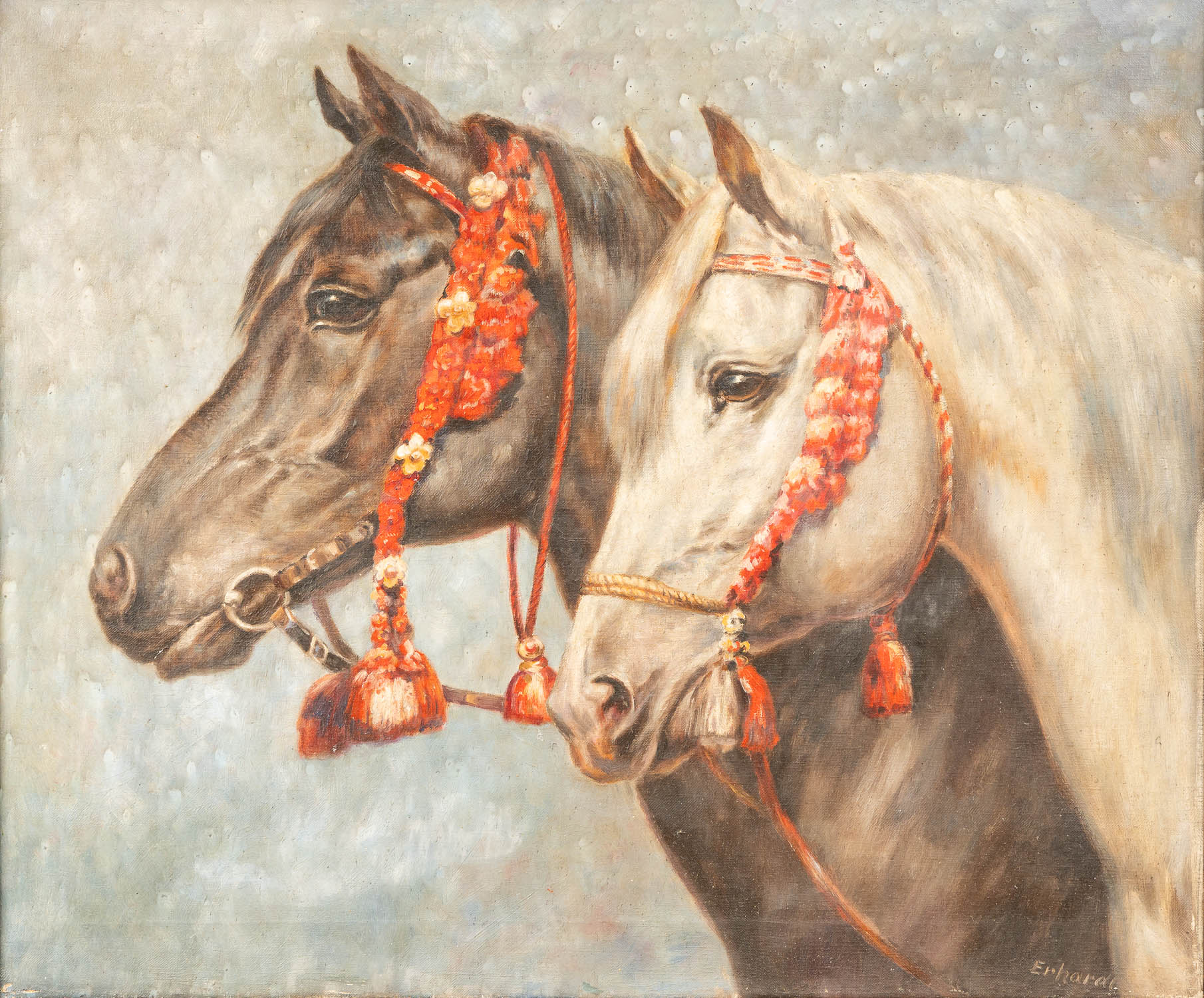 Erhardt around 1920, Two horses. Oil on canvas. Framed. 50 x 60 cm