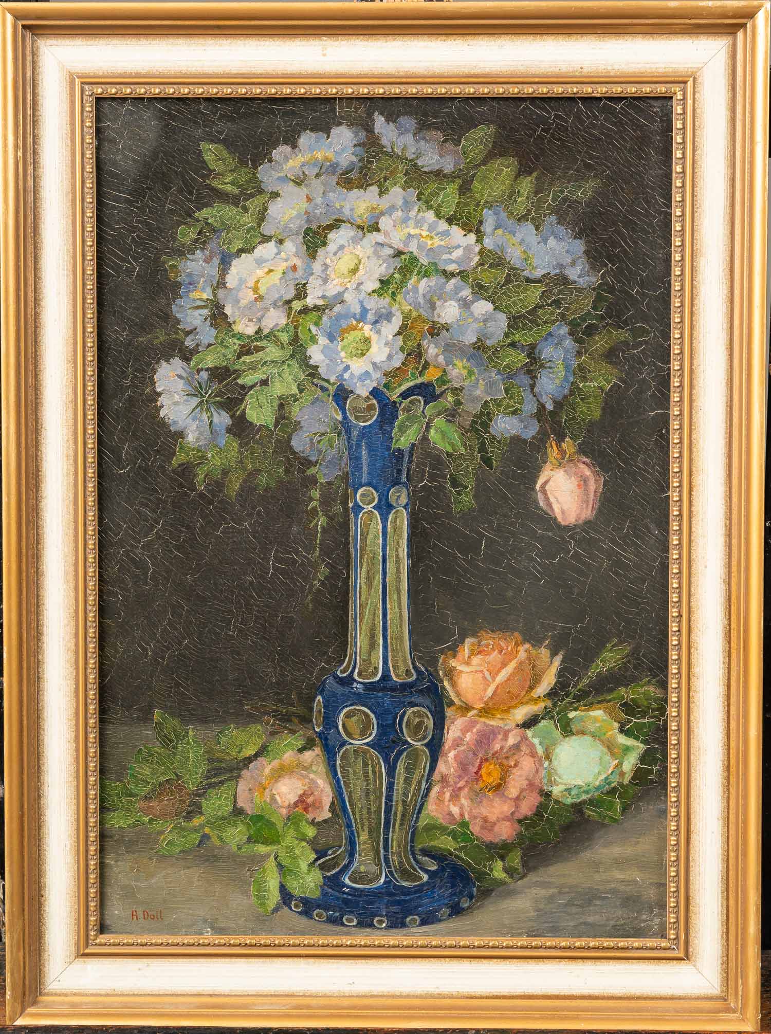 DEUTSCH AUCTIONEERS Lot106 in DetailArtist 19th Century, Still life, described A. Doll . Oil on cardboard. Framed. 58 x 34 cm